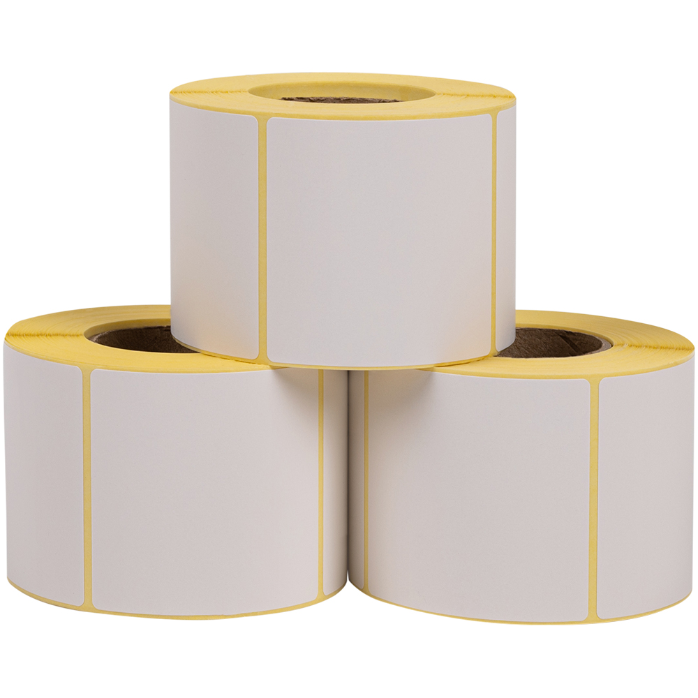 Самоклеящиеся этикетки ЭКО из матовой бумаги белого цвета, шириной 58 мм, высотой 60 мм, диаметром втулки 40 мм, количеством в рулоне по 500 штук. Производятся в России. Термоэтикетки ЭКО в рулонах предназначены для печати на принтерах без риббона. На этикетках есть специальный слой, который при нагреве термоголовки принтера темнеет, за счет этого происходит печать.