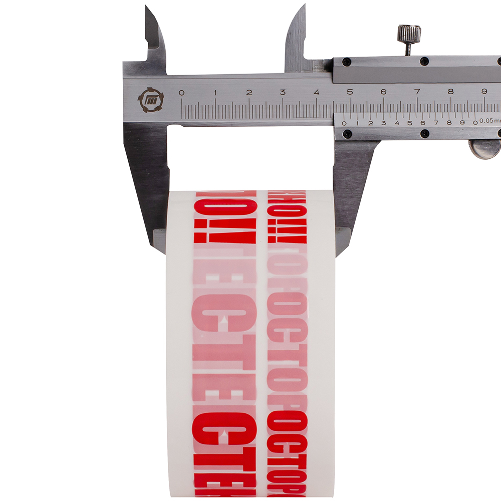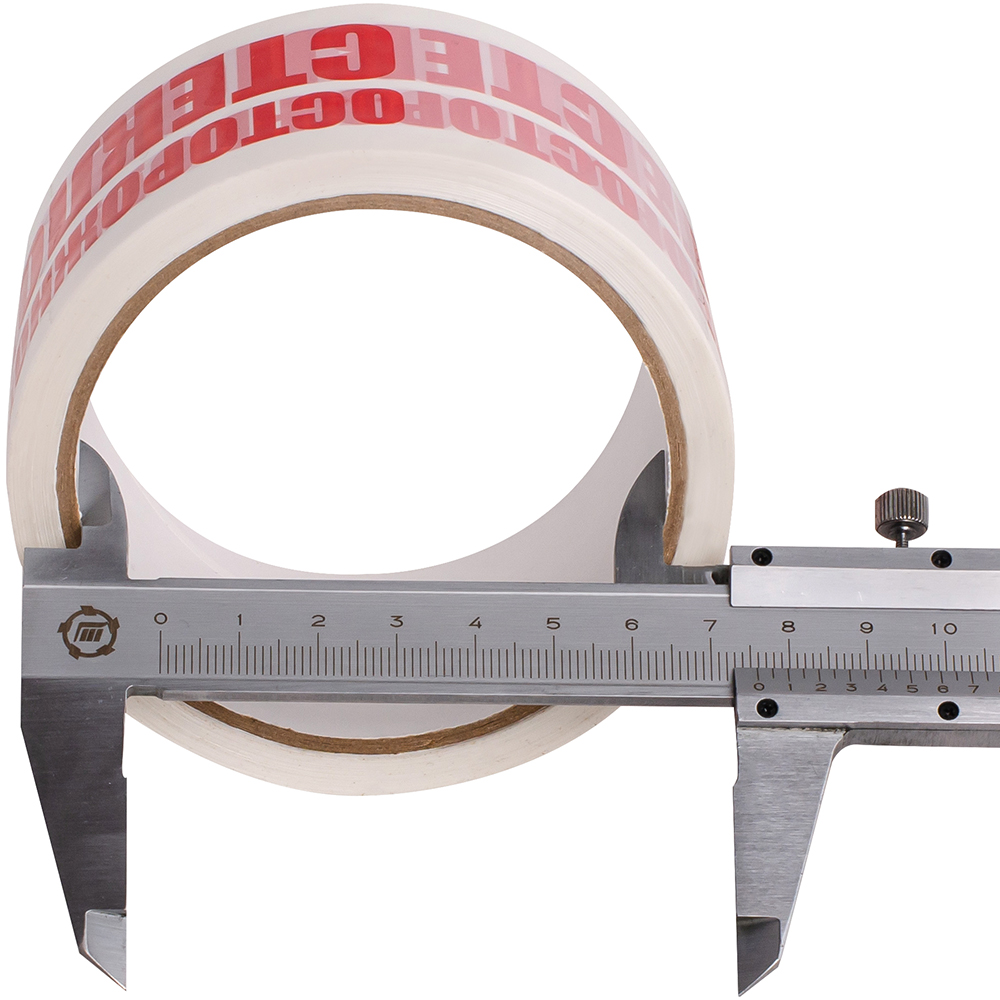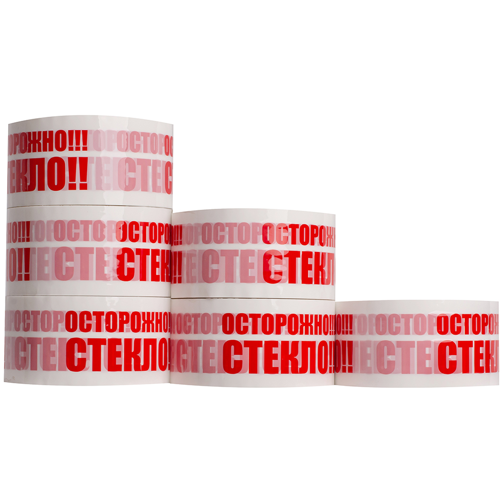 Намотка клейкой ленты с красной надписью «Осторожно стекло» составляет 66 метров.