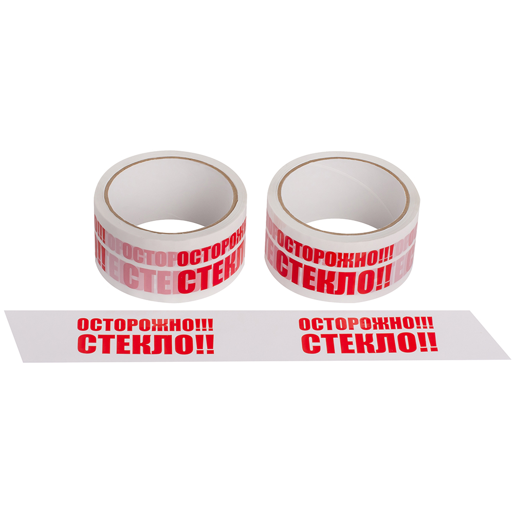 Клейкая лента с печатью «Осторожно стекло», белая, 48мм*66м*40мкм