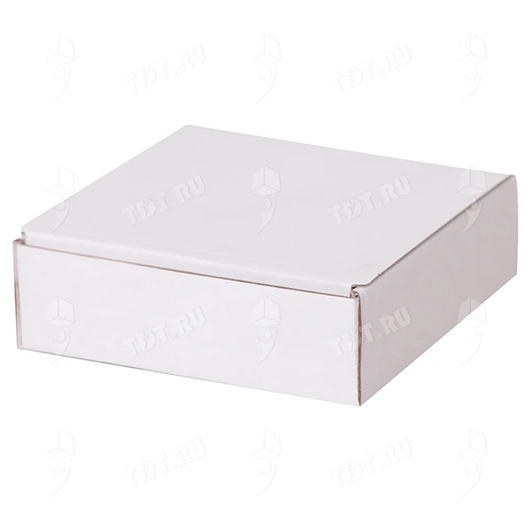 Короб КС-403 МГФ, серии КС-400, белый, длиной 110 мм, шириной 110 мм и высотой 35 мм. Изготовлен из микрогофрокартона Т-23. Полезный объём — 0.4 л.