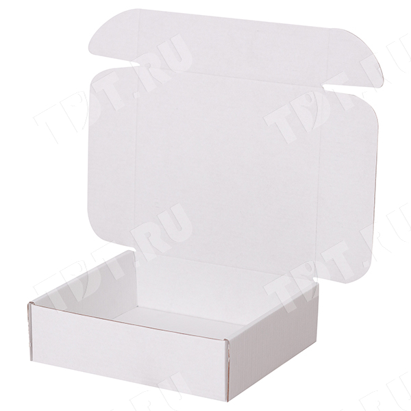 Короб КС-411 МГФ, серии КС-400, белый, длиной 170 мм, шириной 160 мм и высотой 50 мм. Изготовлен из микрогофрокартона Т-23. Полезный объём — 1.35 л.