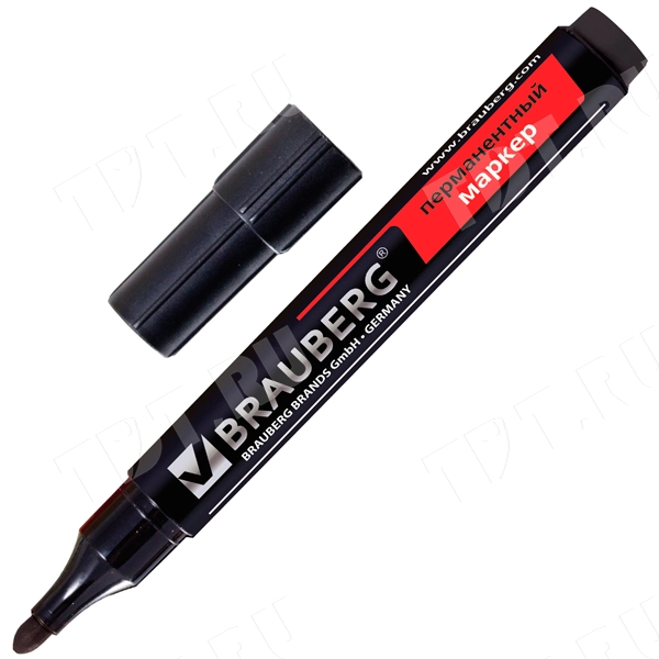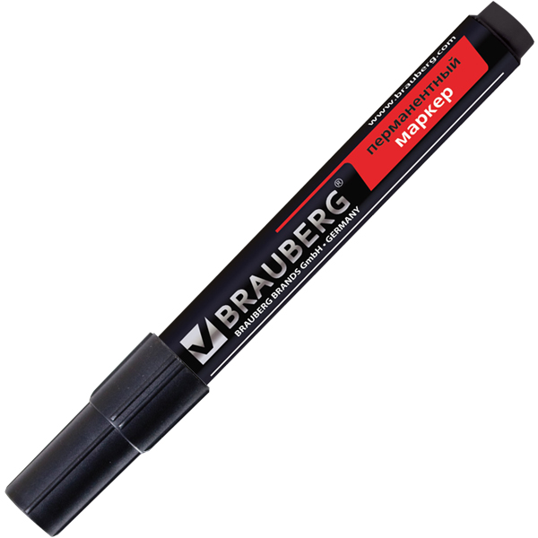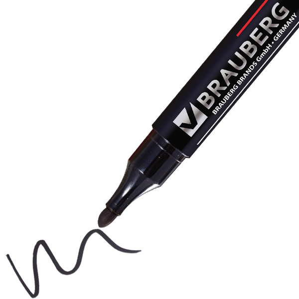 Маркер перманентный BRAUBERG, спиртовой, толщиной пера 3 мм, черного цвета, круглый наконечник, код производителя 150465. Производится в Китае.