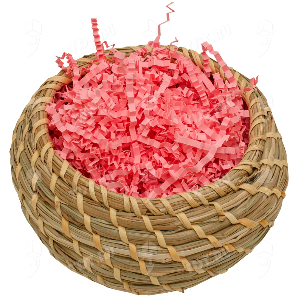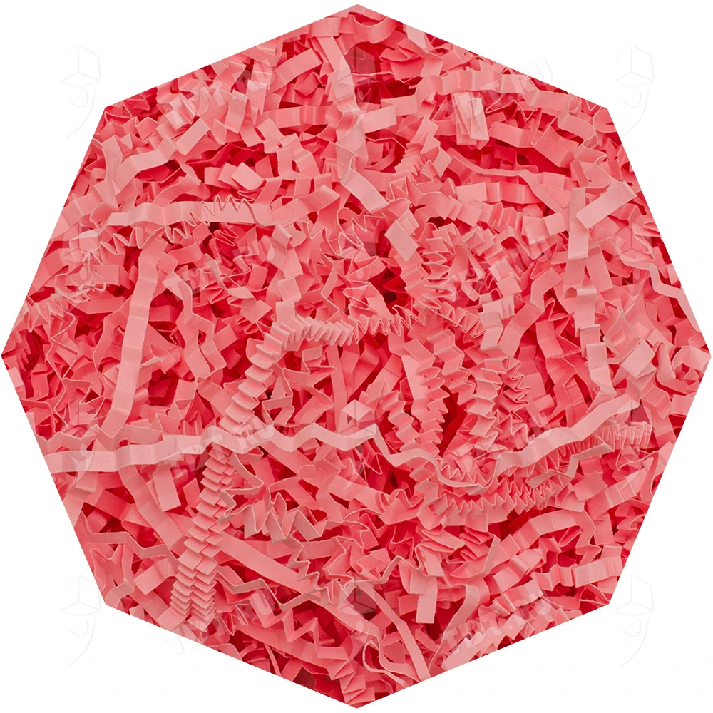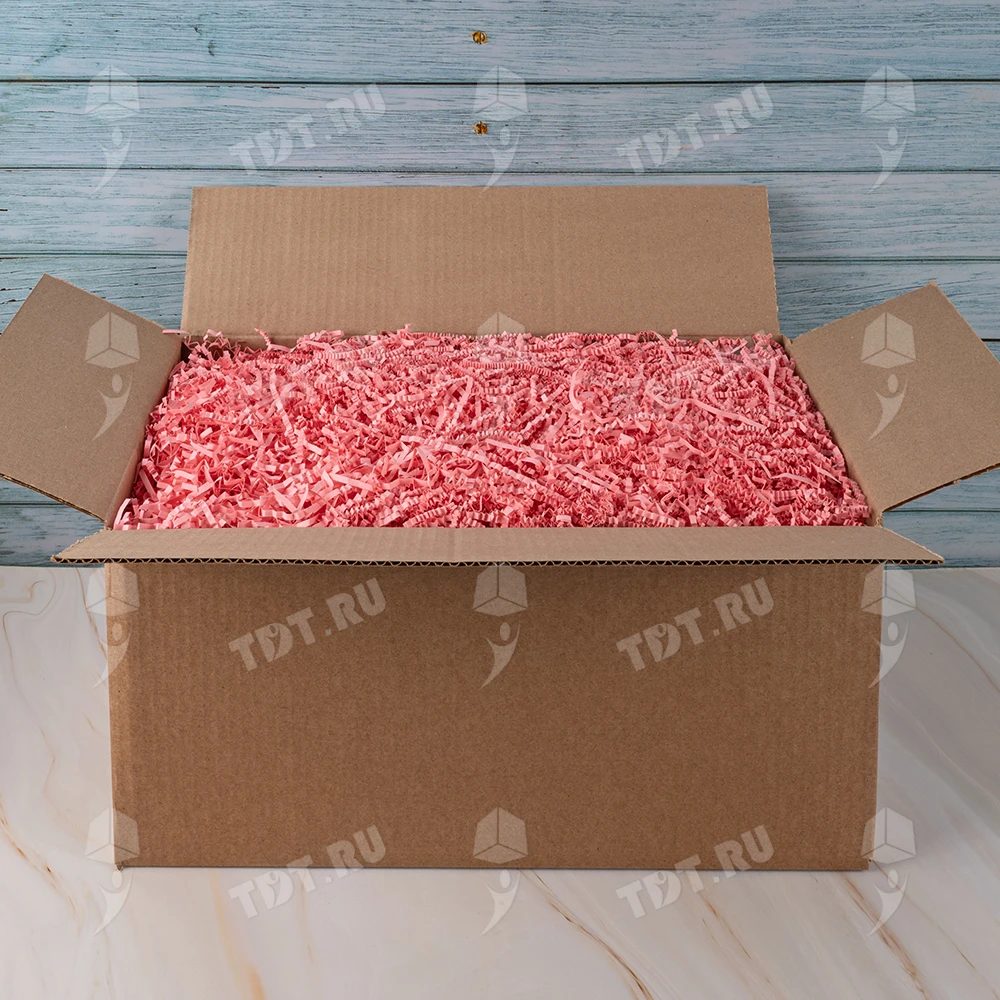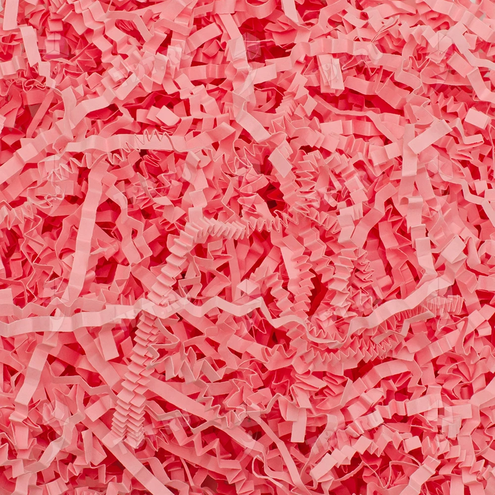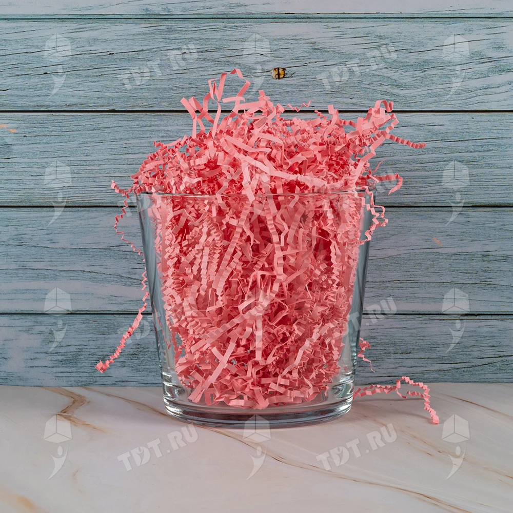 Бумажный подарочный наполнитель «Розовая жемчужина» из офсетной бумаги, розового цвета, весом 1 кг, плотностью 80 г/м², шириной резки 2-3 мм. Производится в России.
