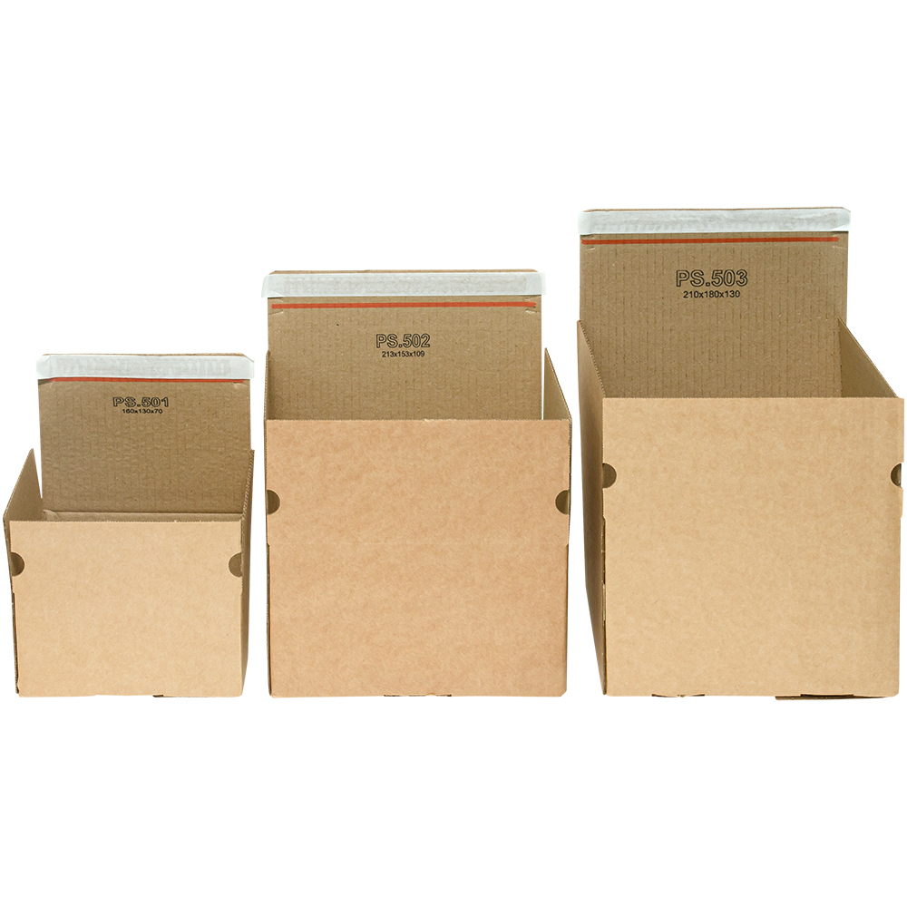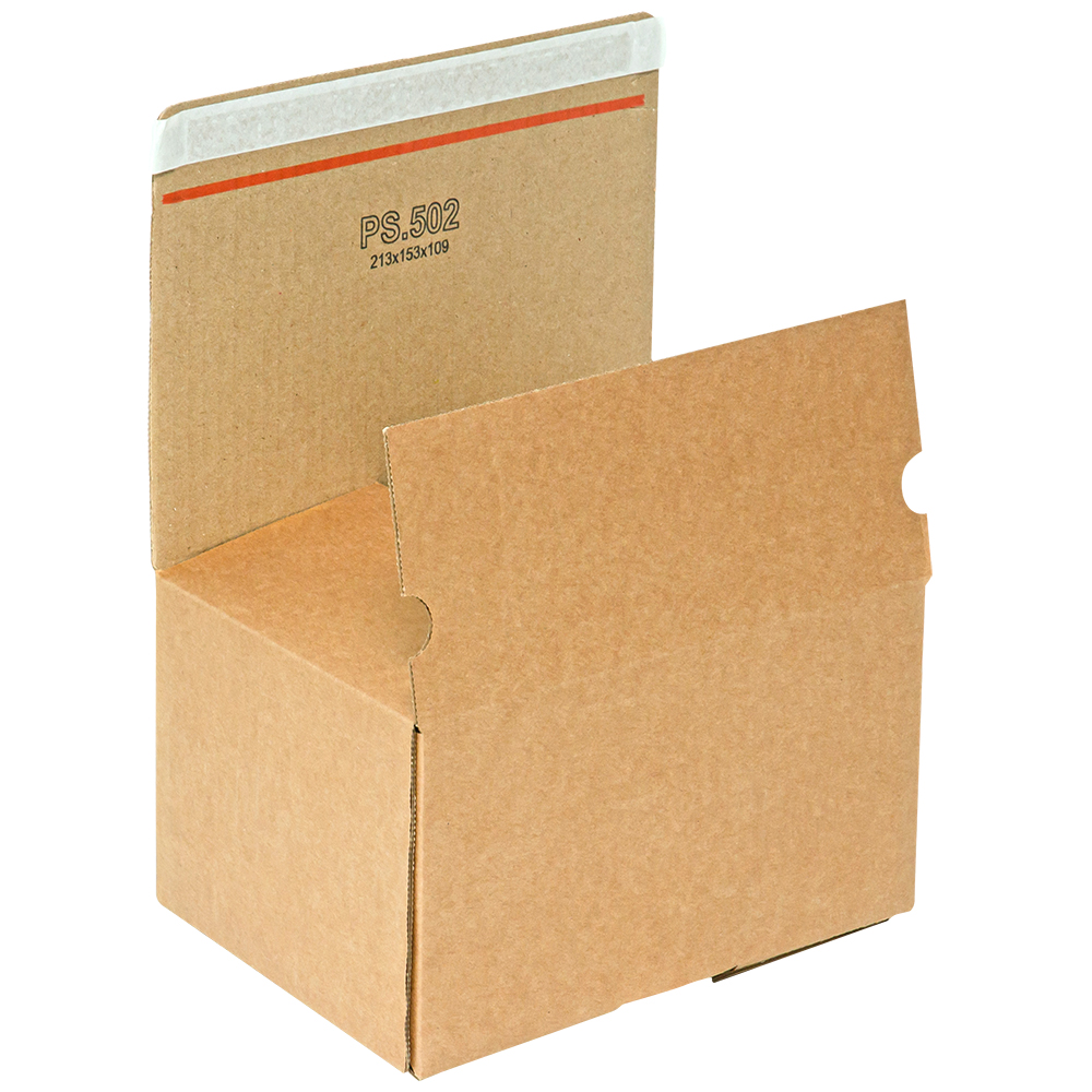 Почтовый короб PS.502 с клеевым клапаном, бурого цвета, длиной 231 мм, шириной 153 мм и высотой 109 мм. Изготовлен из трёхслойного гофрокартона Т-23 В. Полезный объём — 3.55 л.