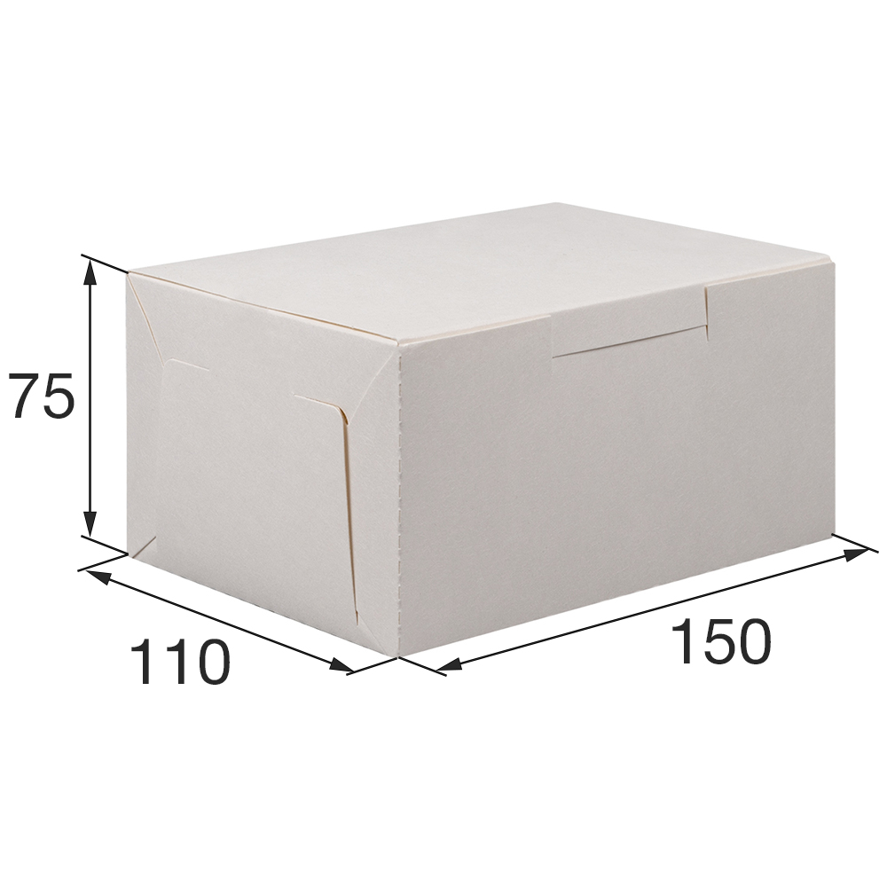 Коробка крафт кондитерская, беленая, длиной 150 мм, шириной 110 мм и высотой 75 мм. Изготовлена из крафт картона. Полезный объём — 1.24 л.
