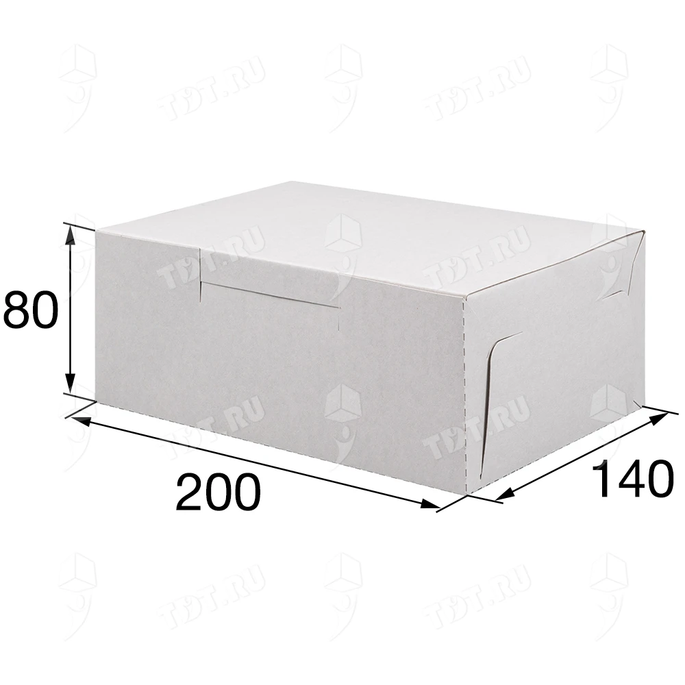 Коробка крафт кондитерская, беленая, длиной 200 мм, шириной 140 мм и высотой 80 мм. Изготовлена из крафт картона. Полезный объём — 2.24 л.
