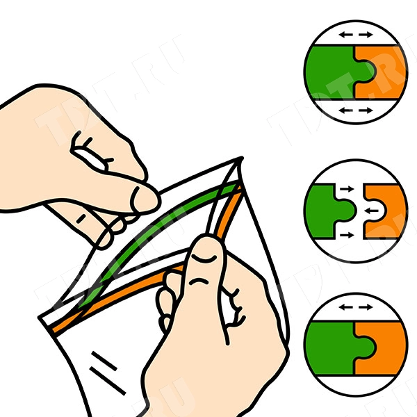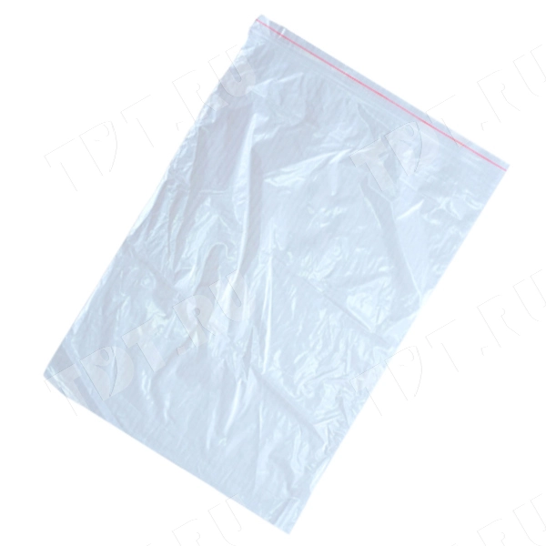 Пакеты Zip-Lock, прозрачного цвета, длиной 400 мм, шириной 300 мм, толщиной 30 мкм, в упаковке по 100 штук. Материал – полиэтилен высокого давления (ПВД). Производятся в России.