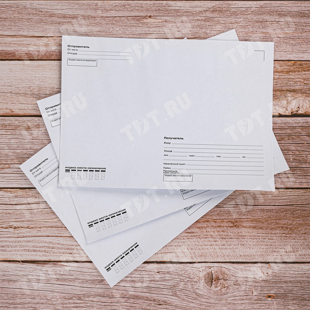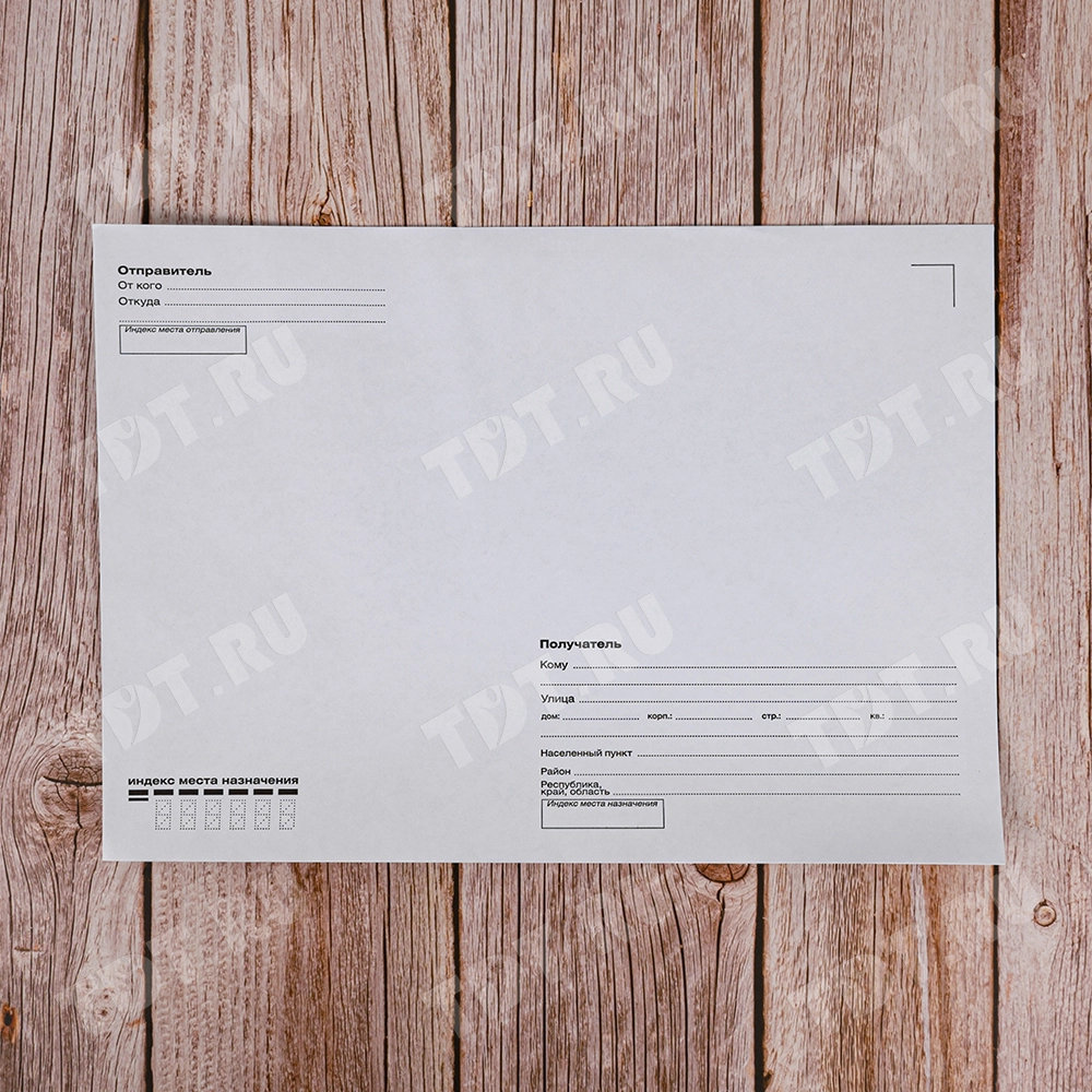 Бумажный почтовый конверт C4 (229*324 мм) с адресной сеткой "Кому-Куда" для отправки уведомлений, корреспонденции, различной документации почтой России.