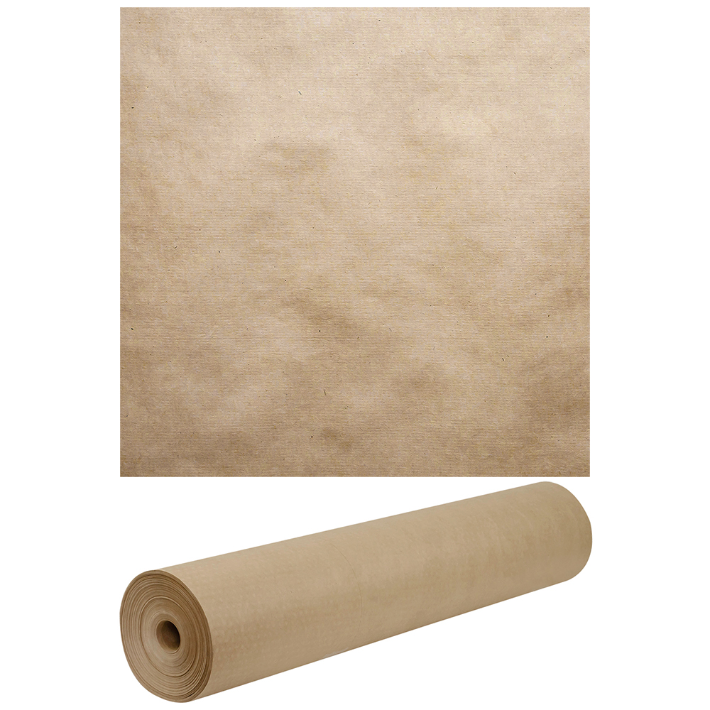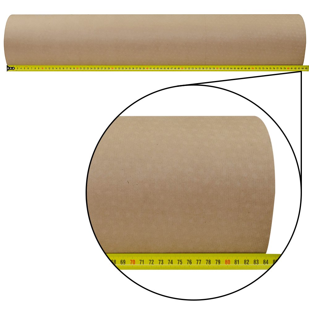 Оберточная крафт бумага в рулоне бурого цвета, шириной 84 см, намоткой 150 м, плотностью 78 г/м². Экологически чистый упаковочный материал из 100% целлюлозы. Производится в России.