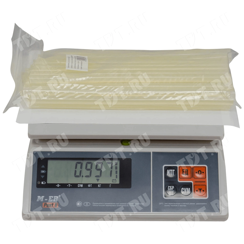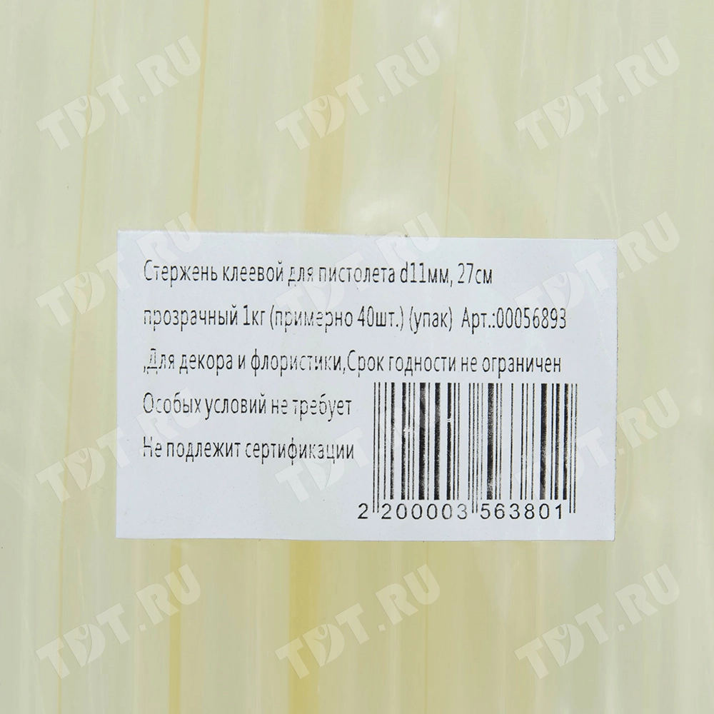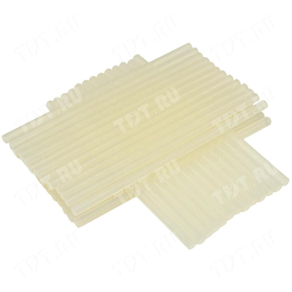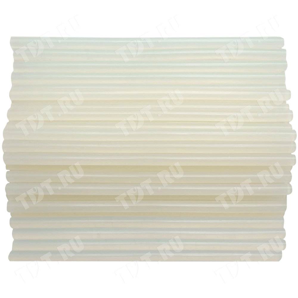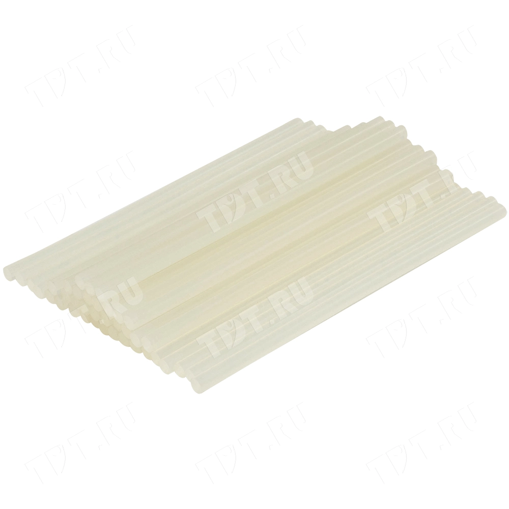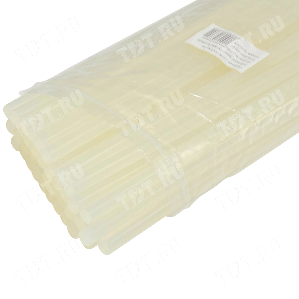 Стержни для клеевых пистолетов горячего плавления, прозрачного цвета, длиной 270 мм, диаметром 11 мм, весом 1 кг, в упаковке по ≈40 штук. Производятся в России.