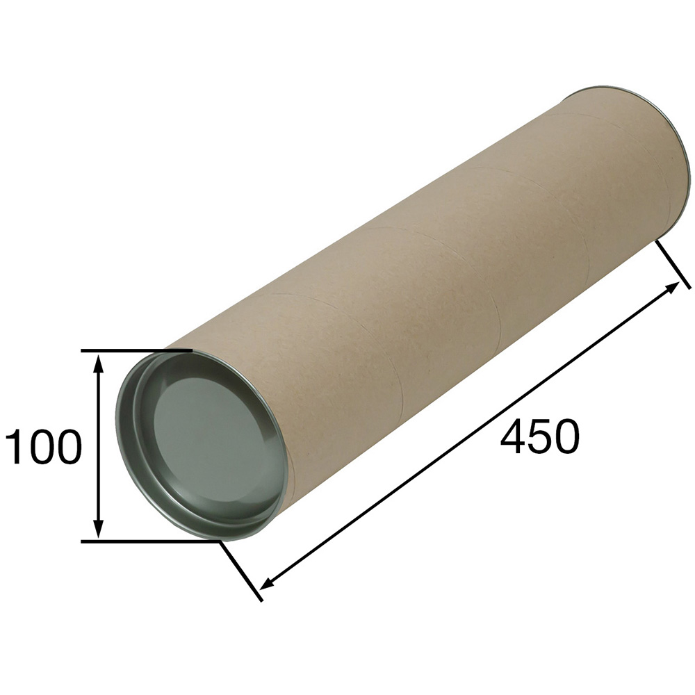 Картонный тубус с жестяной крышкой, 100*450 мм