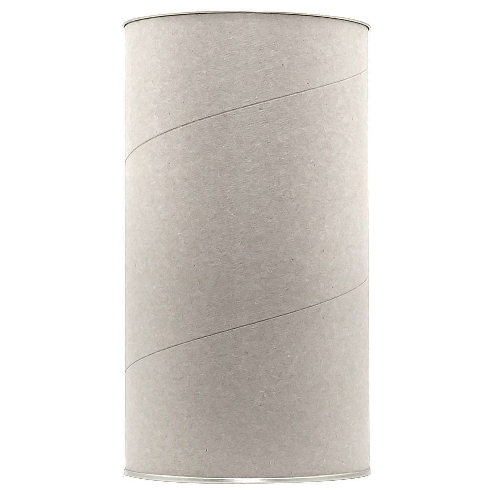 Картонный тубус с металлической крышкой и дном, бурого или светло-серого цвета, диаметром 120 мм, высотой 220 мм, толщиной 1.2 мм, весом 105 г, транспортировочным объемом 0.003168 м³. Материал – прочный многослойный картон. Производится в России.