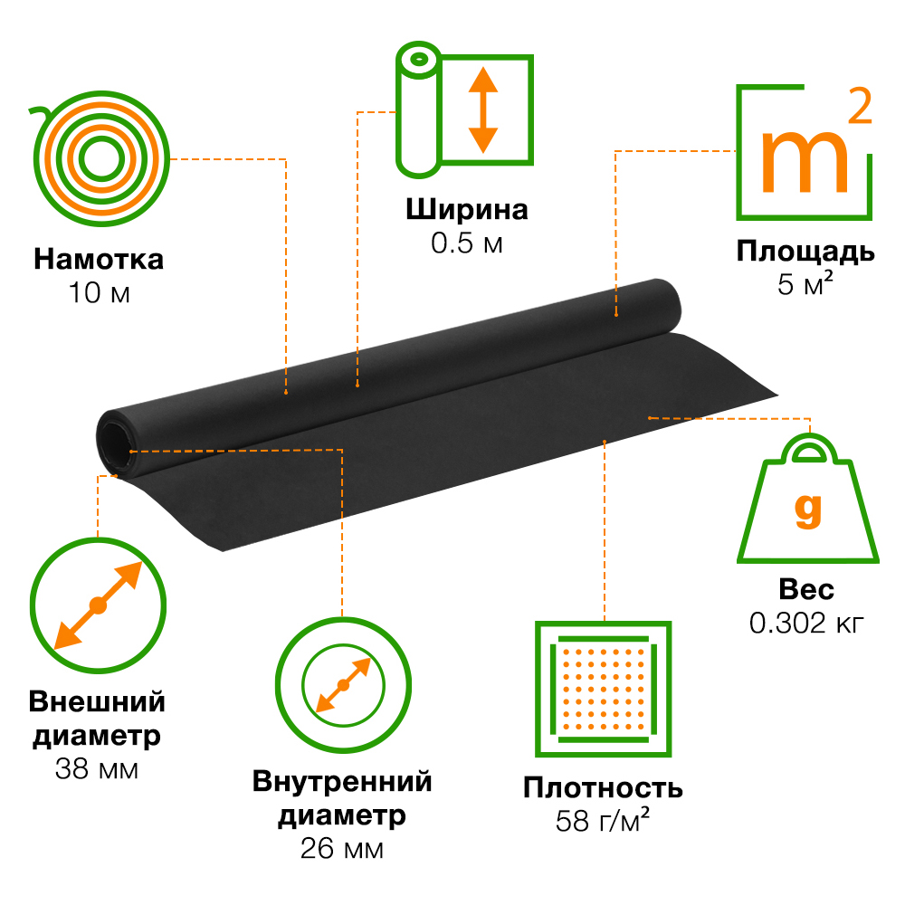 Толщина чёрного пергамента составляет 50 мкм, а плотность - 58 г/м².