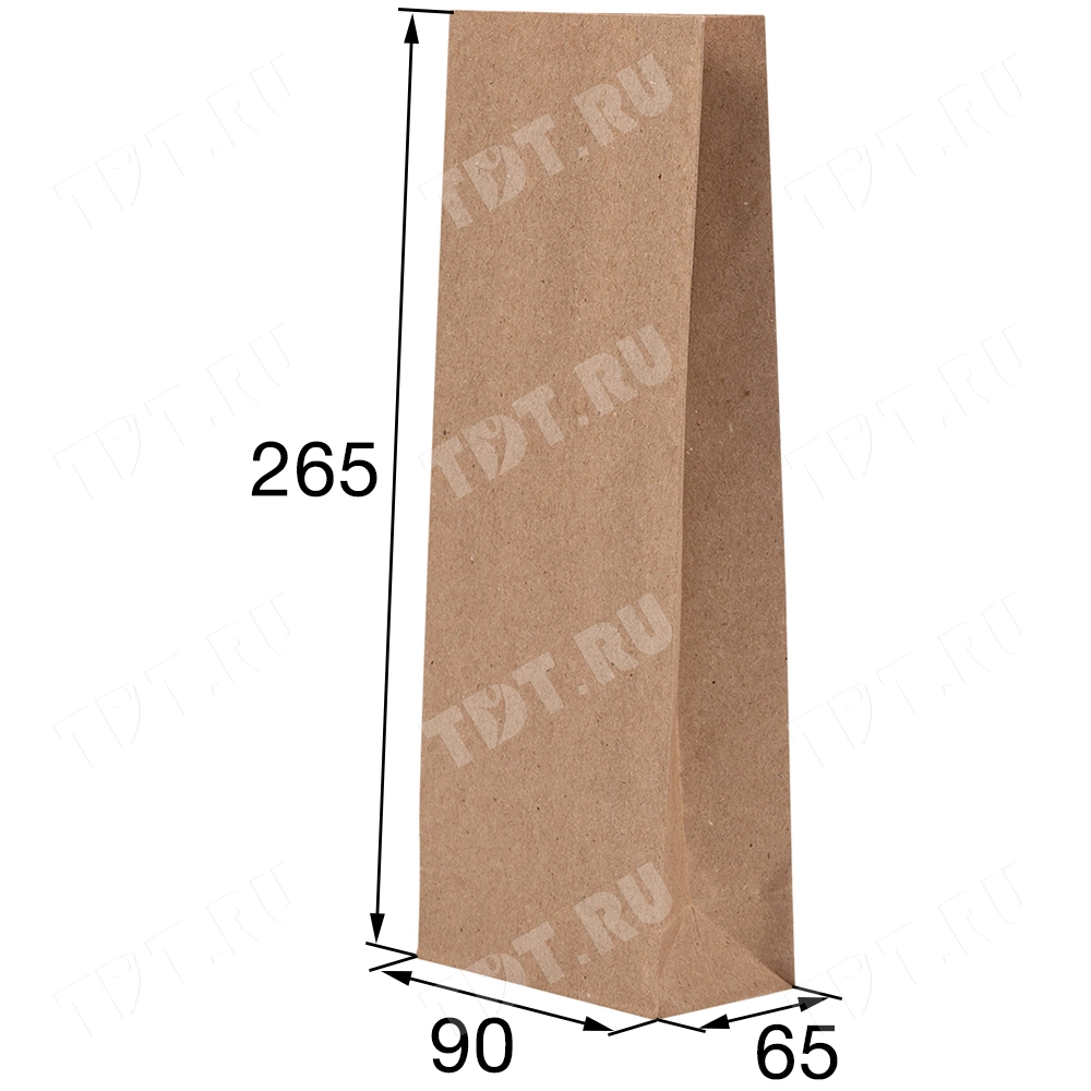 Высокий бумажный крафт пакет без ручек шириной 65 мм, длиной 90 мм, высотой 265 мм изготовлен из экологичного материала. Пакеты производятся в России.