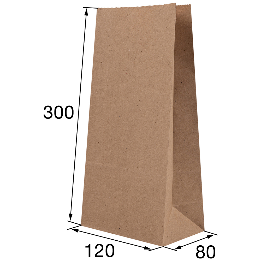 Бумажный крафт пакет без ручек шириной 80 мм, длиной 120 мм, высотой 300 мм изготовлен из экологичного материала. Пакеты производятся в России.