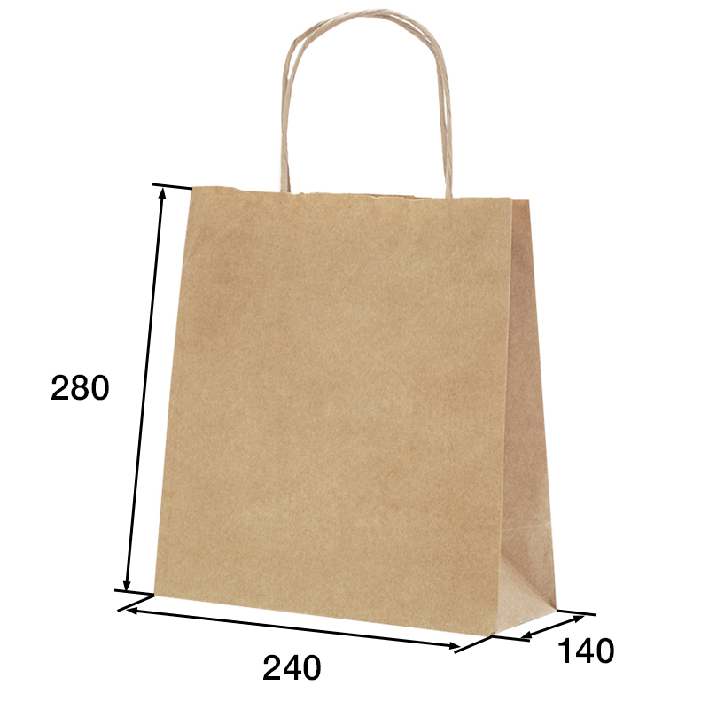 Крафт пакет с крученой ручкой, 70 г/м², 24*14*28 см