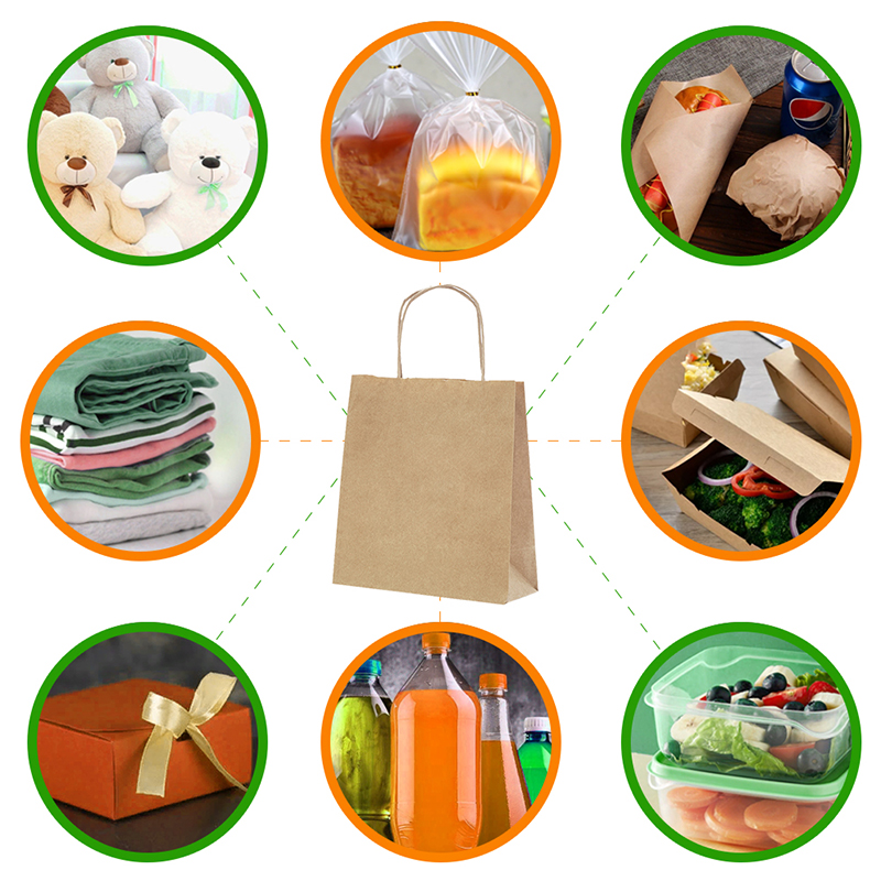 Ручки изготовлены в виде бумажного шпагата путем скручивания и надежным способом закреплены с внутренней стороны, что усиливает прочность, износостойкость и придает пакету эстетичный вид.