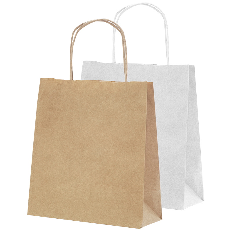 Ручки изготовлены в виде бумажного шпагата путем скручивания и надежным способом закреплены с внутренней стороны, что усиливает прочность, износостойкость и придает пакету эстетичный вид.