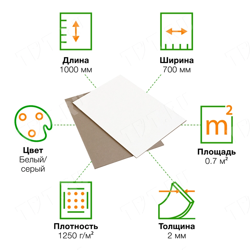 Обложечный картон с белым покровным слоем, 1000*700*2 мм