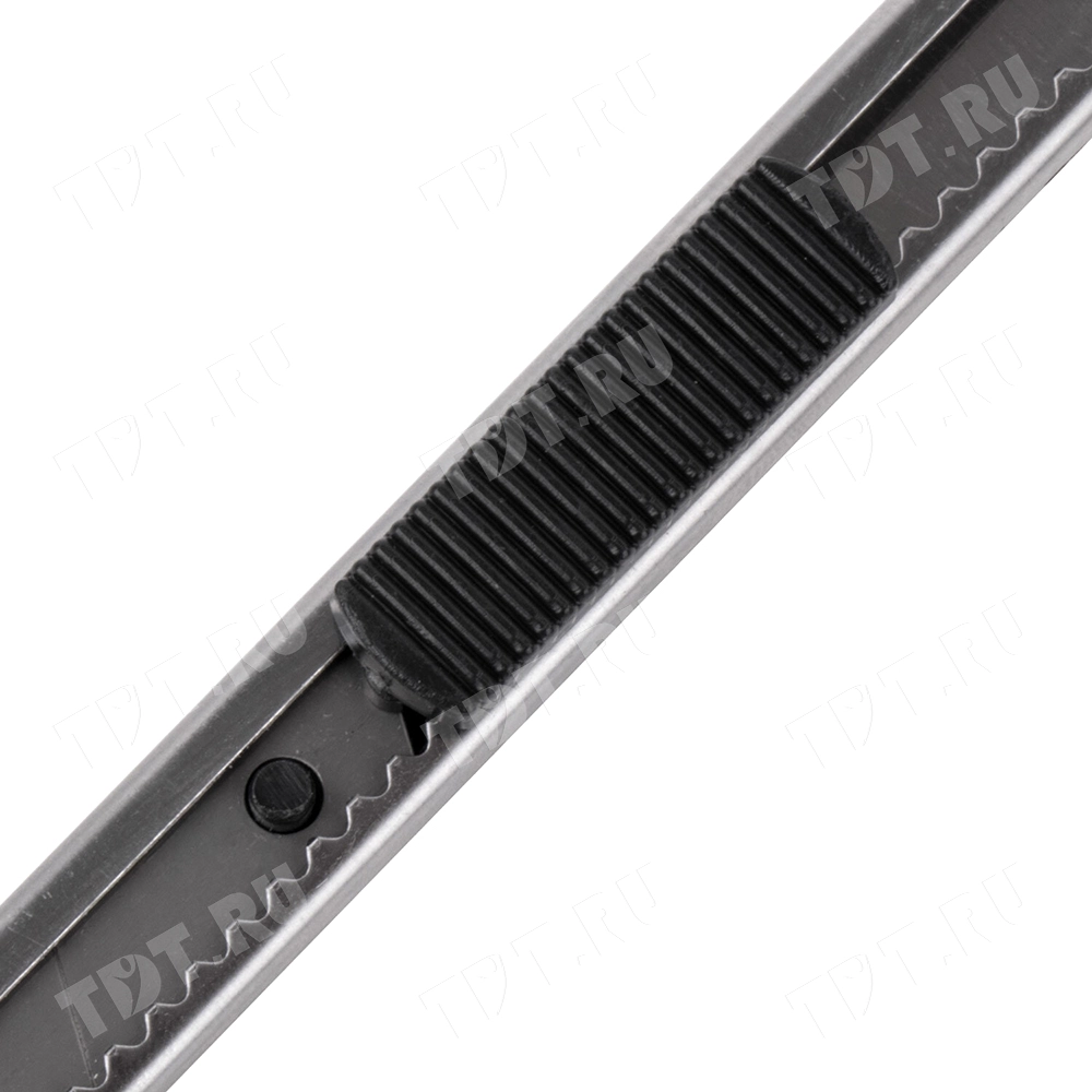 У этого канцелярского ножа металлический корпус.