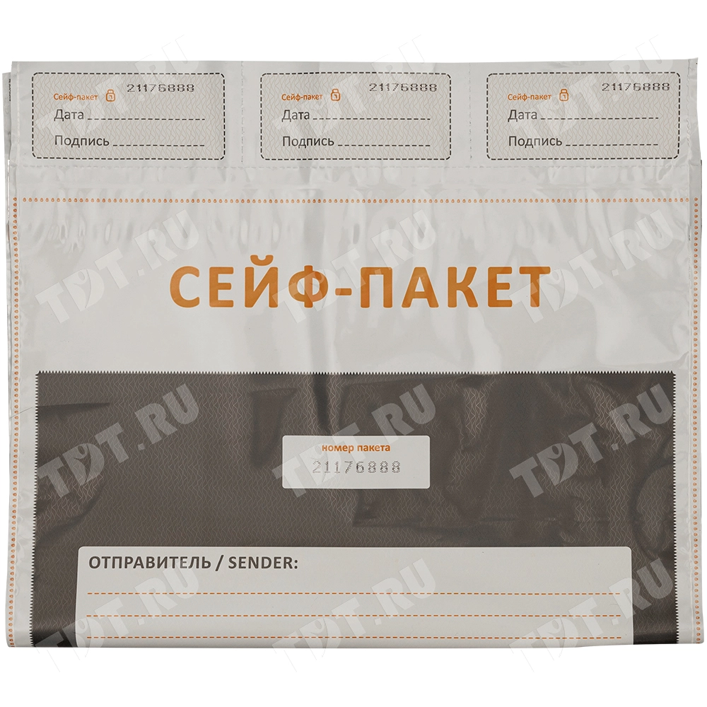 Данный пакет оснащён клеевым клапаном, который можно закрыть единоразово. При вскрытии сейф-ленты на ней проявляется контрольная надпись «ВСКРЫТО», «OPEN», «СТОП», «STOP», неисчезающая при повторном закрытии.