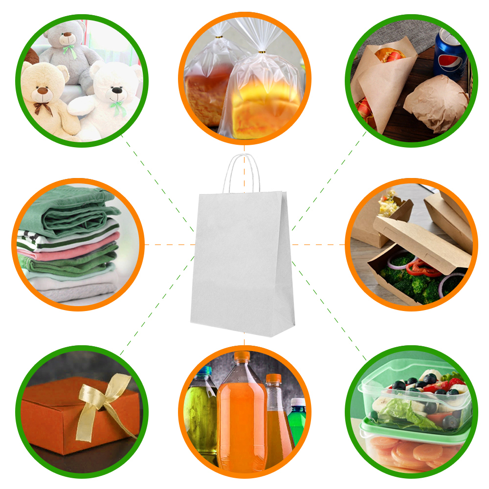 Пакеты с кручёной ручкой используются для упаковки, переноски, хранения продуктов питания и бытовых товаров. Они незаменимы в магазинах, пекарнях, кафе, ресторанах и на фудкортах.