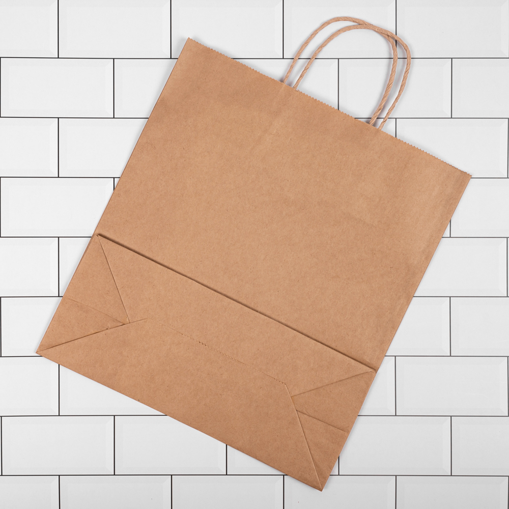 Крафт пакет отлично держит форму, дно и боковины качественно склеены.
