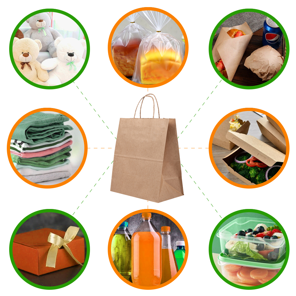 Пакеты с кручёной ручкой используются для упаковки, переноски, хранения продуктов питания и бытовых товаров. Они незаменимы в магазинах, пекарнях, кафе, ресторанах и на фудкортах.