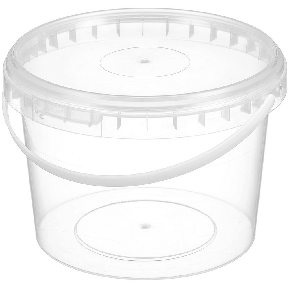 Прозрачные пластиковые ведра с крышками объемом 0.5 л, высотой 80 мм, диаметром верха 111 мм, низа 90 мм. Крышка наружным диаметром 109 мм, высотой 6 мм. Материал – полипропилен. Выдерживают широкий температурный интервал от -25 до +70 °C. Производятся в России.
