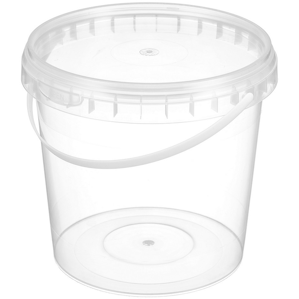 Прозрачные пластиковые ведра с крышками объемом 1 л, высотой 120 мм, диаметром верха 131 мм, низа 102 мм. Крышка наружным диаметром 130 мм, высотой 9 мм. Материал – полипропилен. Выдерживают широкий температурный интервал от -25 до +70 °C. Производятся в России.