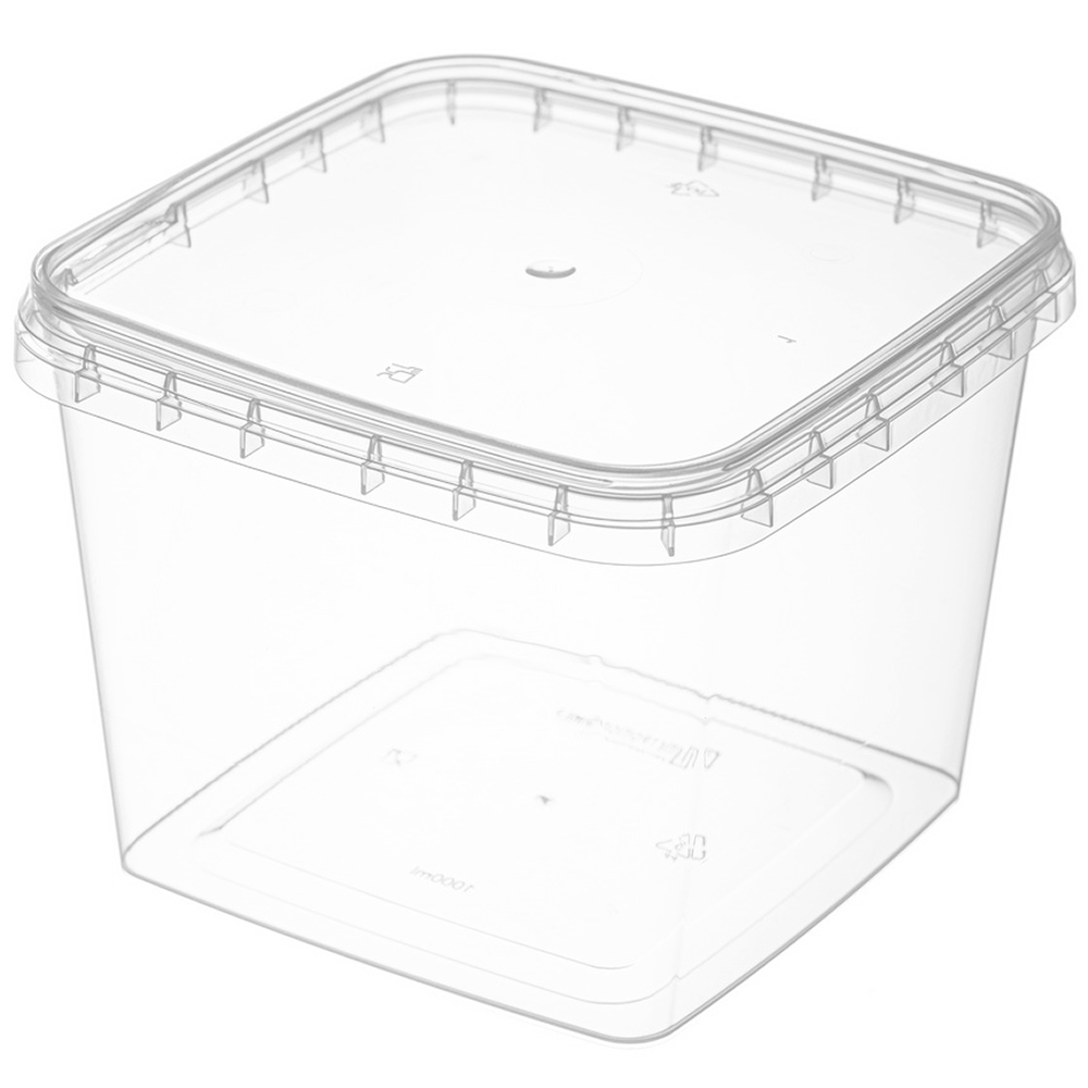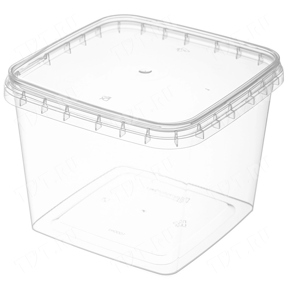 Прозрачные контейнеры с крышками, объемом 1000 мл. Крышка наружным размером 130*130 мм, высотой 8 мм. Материал – полипропилен. Выдерживают широкий температурный интервал от -25 до +70 °C. Производятся в России.
