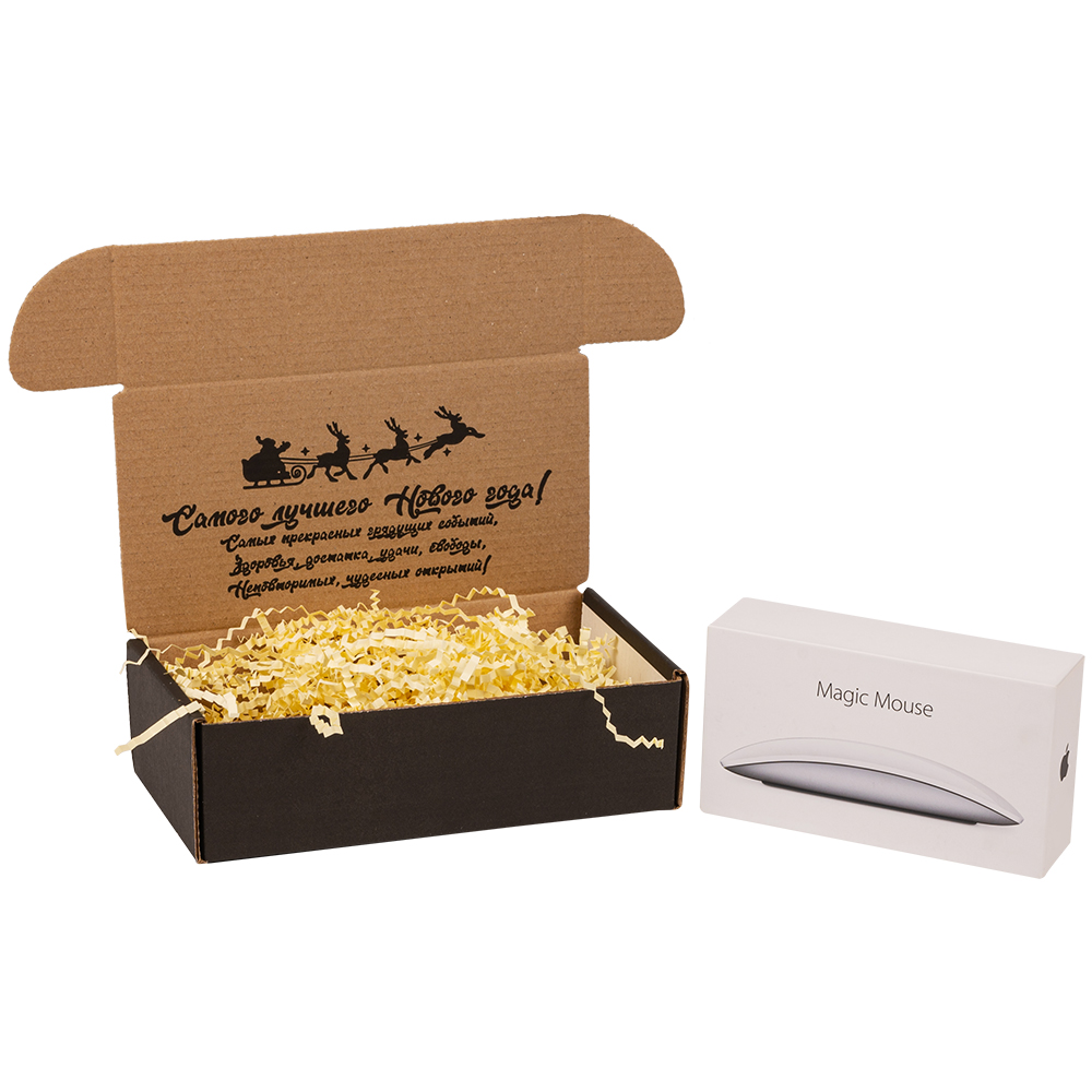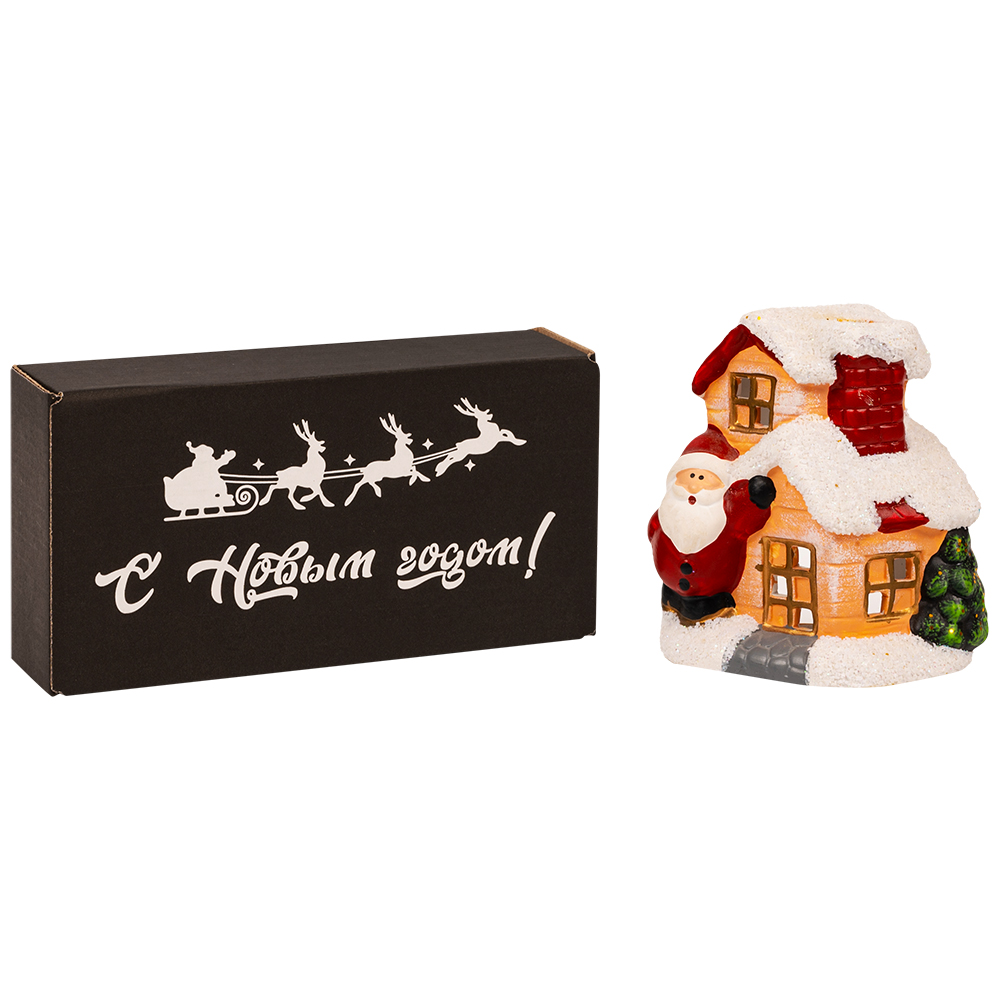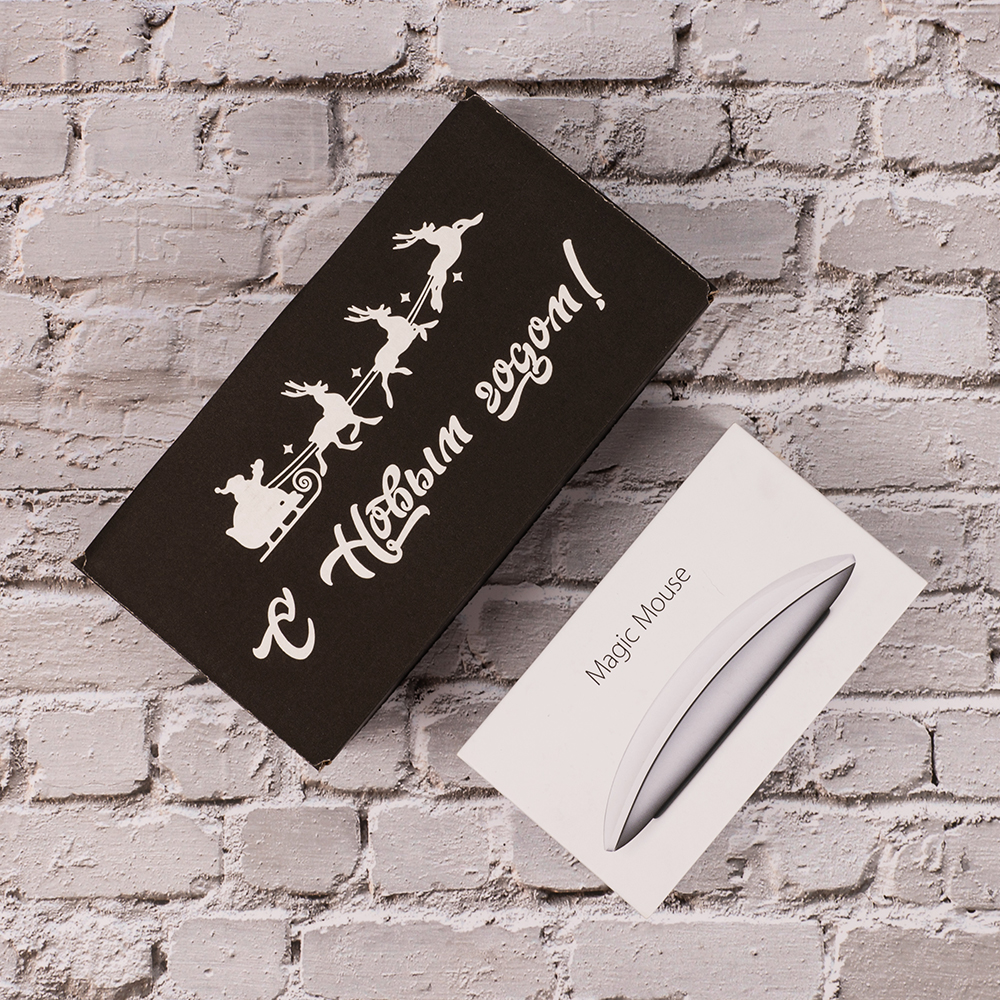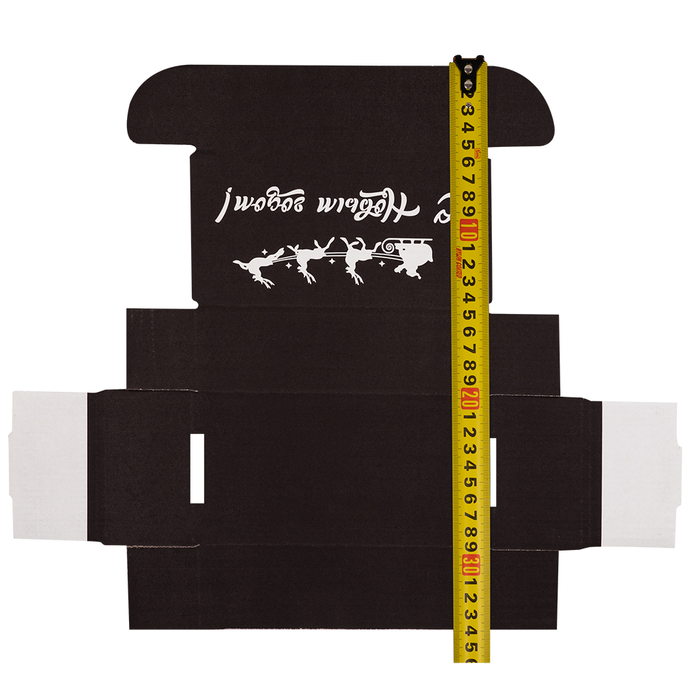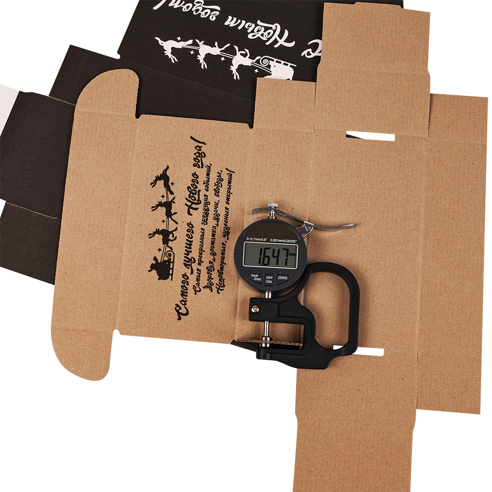 Подарочная коробка «С Новым годом!» чёрная, с поздравительной надписью, длиной 170 мм, шириной 90 мм и высотой 50 мм. Изготовлена из микрогофрокартона Е-22. Полезный объём — 0.76 л.