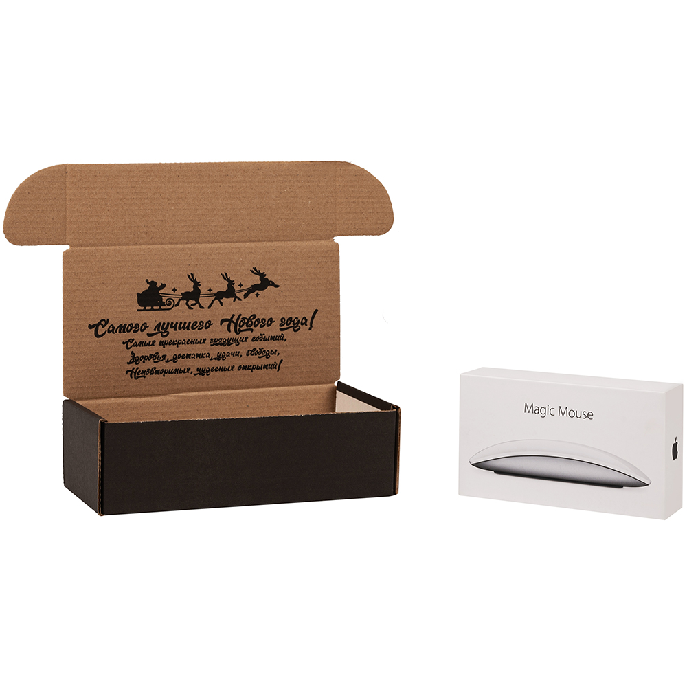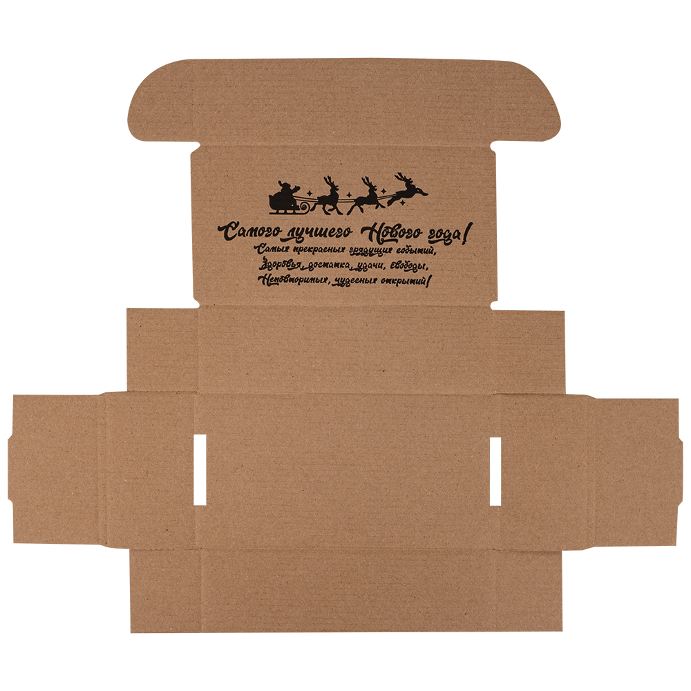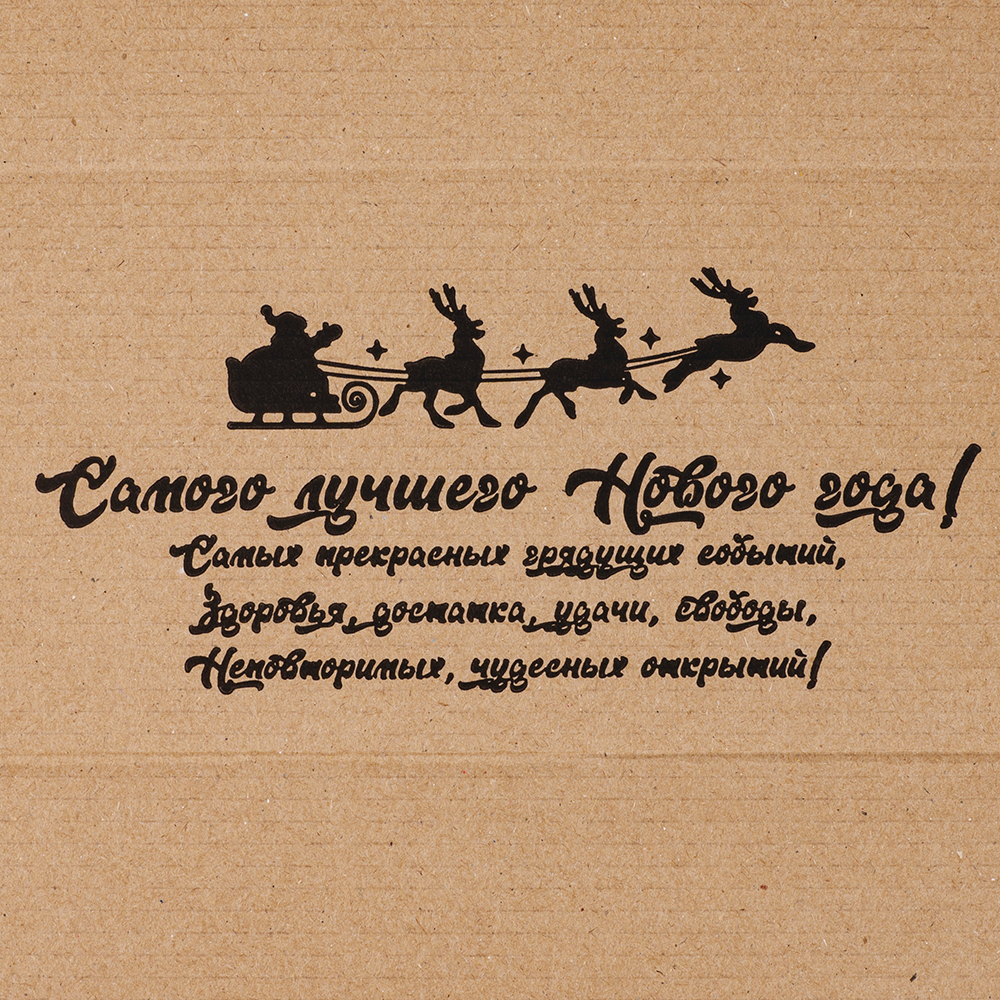 - Вам не придётся заучивать поздравительную речь, ведь на лицевой и внутренней сторонах коробки написаны новогодние поздравления, поэтому она всё скажет за вас.