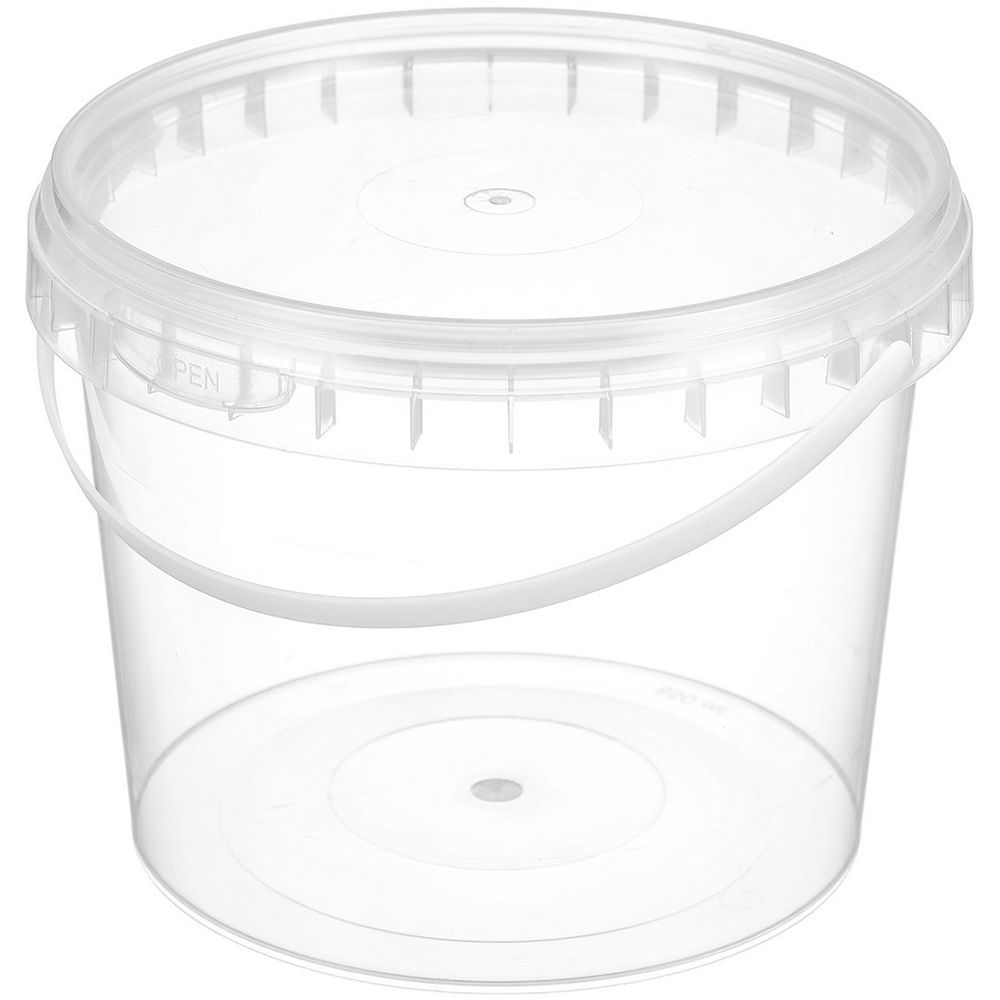Прозрачные пластиковые ведра с крышками объемом 0.8 л, высотой 95 мм, диаметром верха 130 мм (внутренним диаметром верха 120 мм), низа 106 мм. Крышка наружным диаметром 130 мм, высотой 9 мм. Материал – полипропилен. Производятся в России.