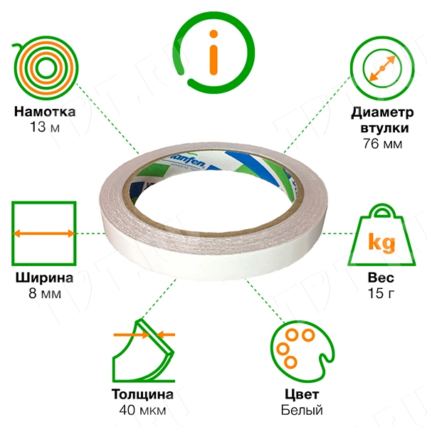 Двухсторонняя клейкая лента (флористическая), 8мм*13м*40мкм