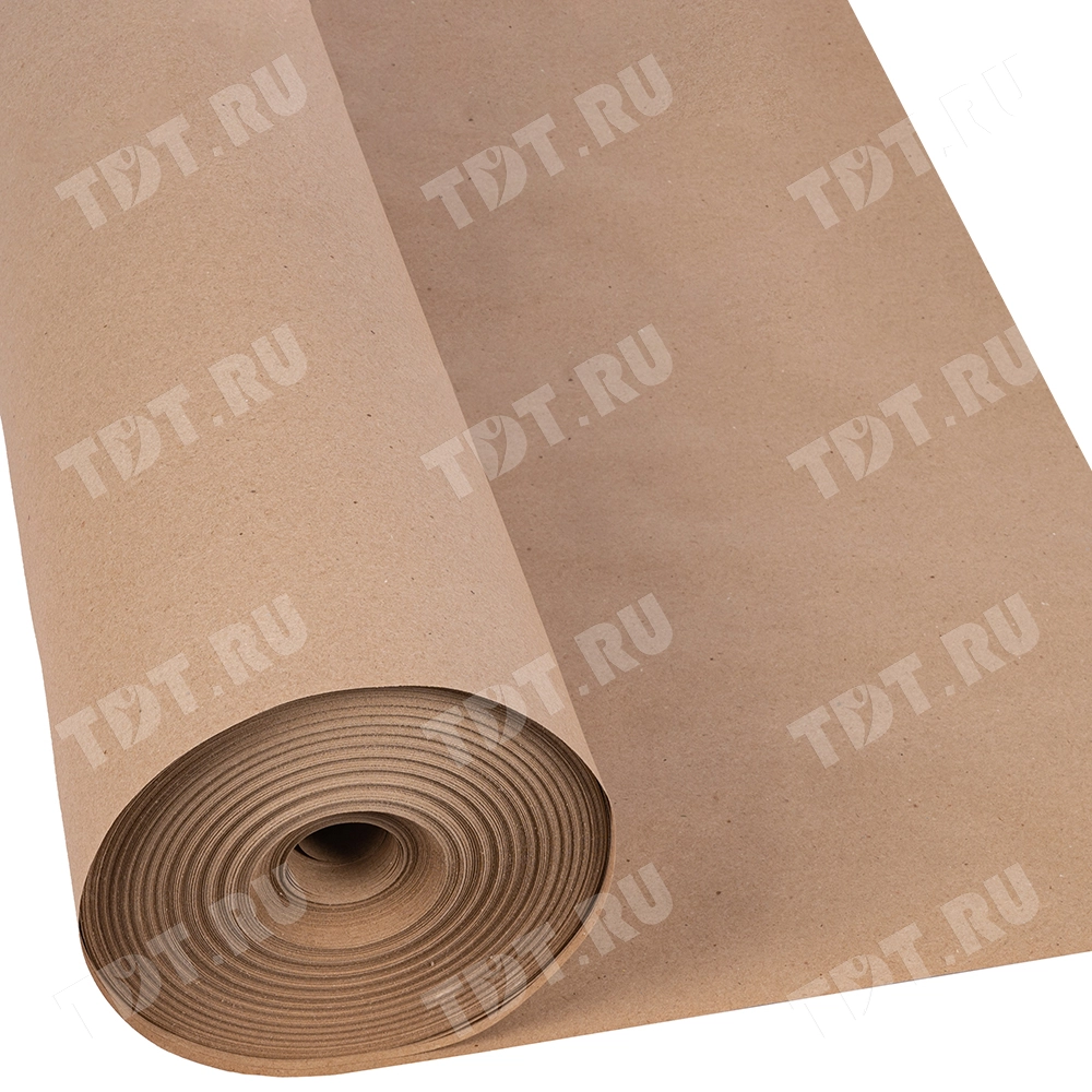 Оберточная крафт бумага в рулоне бурого цвета, шириной 84 см, намоткой 150 м, плотностью 80 г/м². Экологически чистый упаковочный материал из вторсырья. Производится в России.