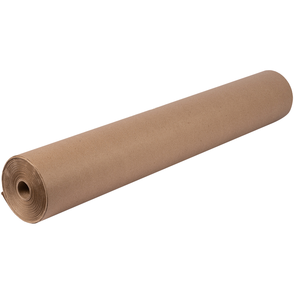 Оберточная крафт бумага в рулоне бурого цвета, шириной 1.05 м, намоткой 100 м, плотностью 80 г/м². Экологически чистый упаковочный материал из вторсырья. Производится в России.
