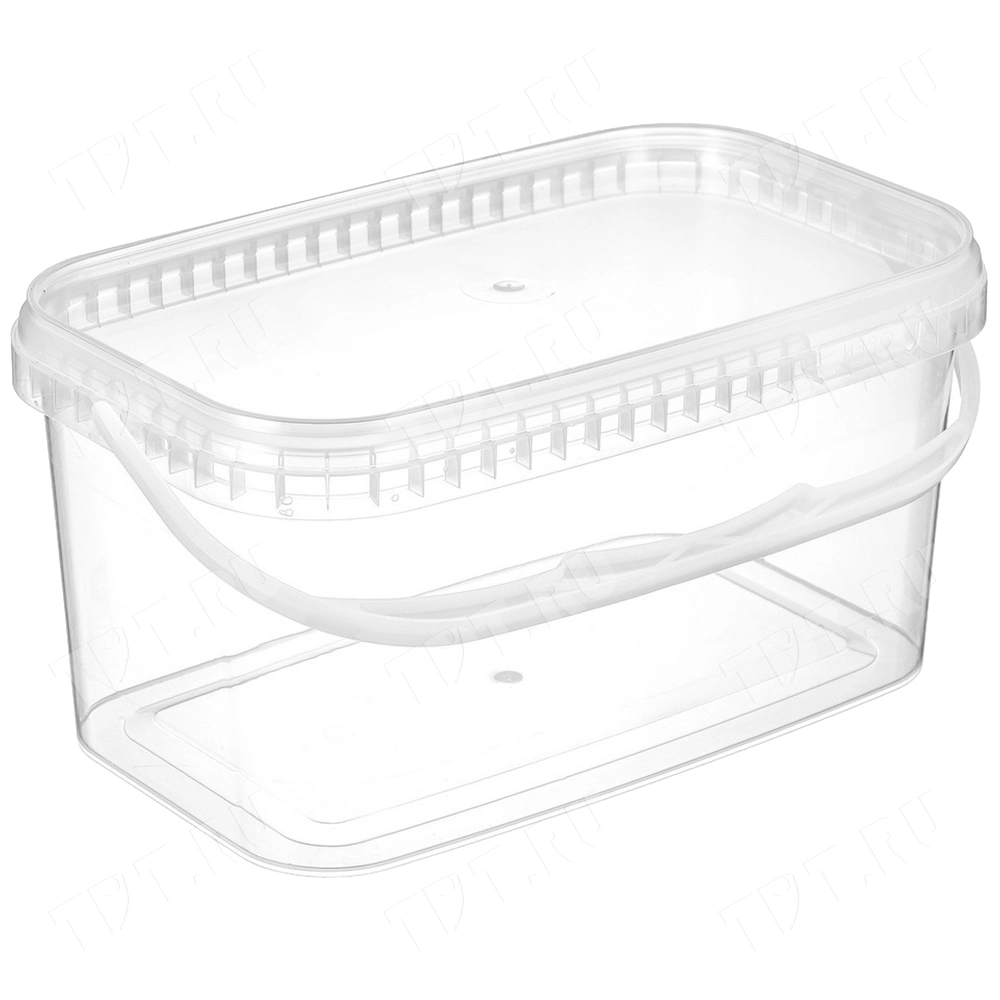Пластиковое ведро, прямоугольное, прозрачная крышка, от -25 до +70 °C, 2000мл