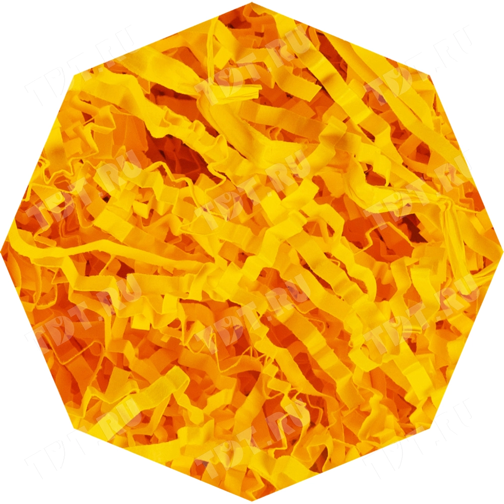 Бумажный подарочный наполнитель «Сладкий лимон» из простой бумаги, цвета сладкого лимона, весом 1 кг, плотностью 80 г/м², шириной резки 2-3 мм. Производится в России.