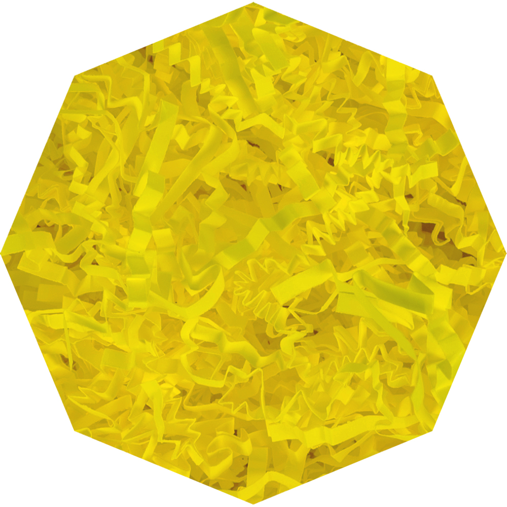 Бумажный подарочный наполнитель «Лазерный лимон» из простой бумаги, яркого лимонного цвета, весом 1 кг, плотностью 80 г/м², шириной резки 2-3 мм. Производится в России.