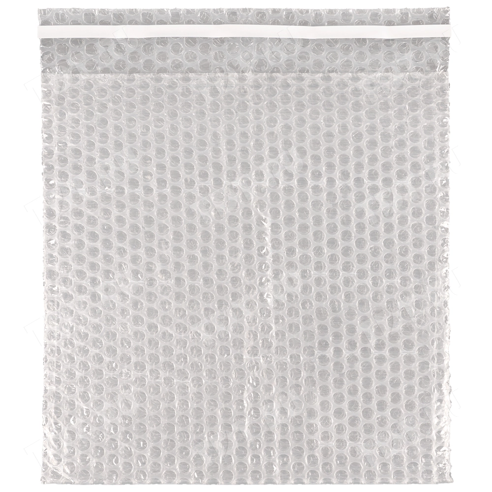 Прозрачный трехслойный воздушно-пузырчатый пакет длиной 10 см, шириной 10 см, с клеевым клапаном 5 см, диаметром пузырька 10 мм, плотностью 60 г/м². Изготовлен из полиэтилена. Производится в России компанией Бета-Куверт.
