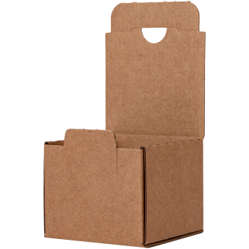 Коробка №235-Ц бурого цвета, длиной 70 мм, шириной 70 мм и высотой 60 мм. Изготовлена из микрогофрокартона Т-23 Е. Полезный объём — 0.294 л.