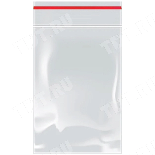 Пакеты Zip-Lock, прозрачного цвета с красной полосой, длиной 70 мм, шириной 50 мм, толщиной 50 мкм, в упаковке по 100 штук. Материал – полиэтилен высокого давления (ПВД). Производятся в России.