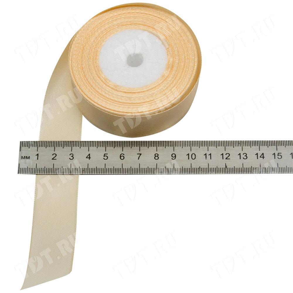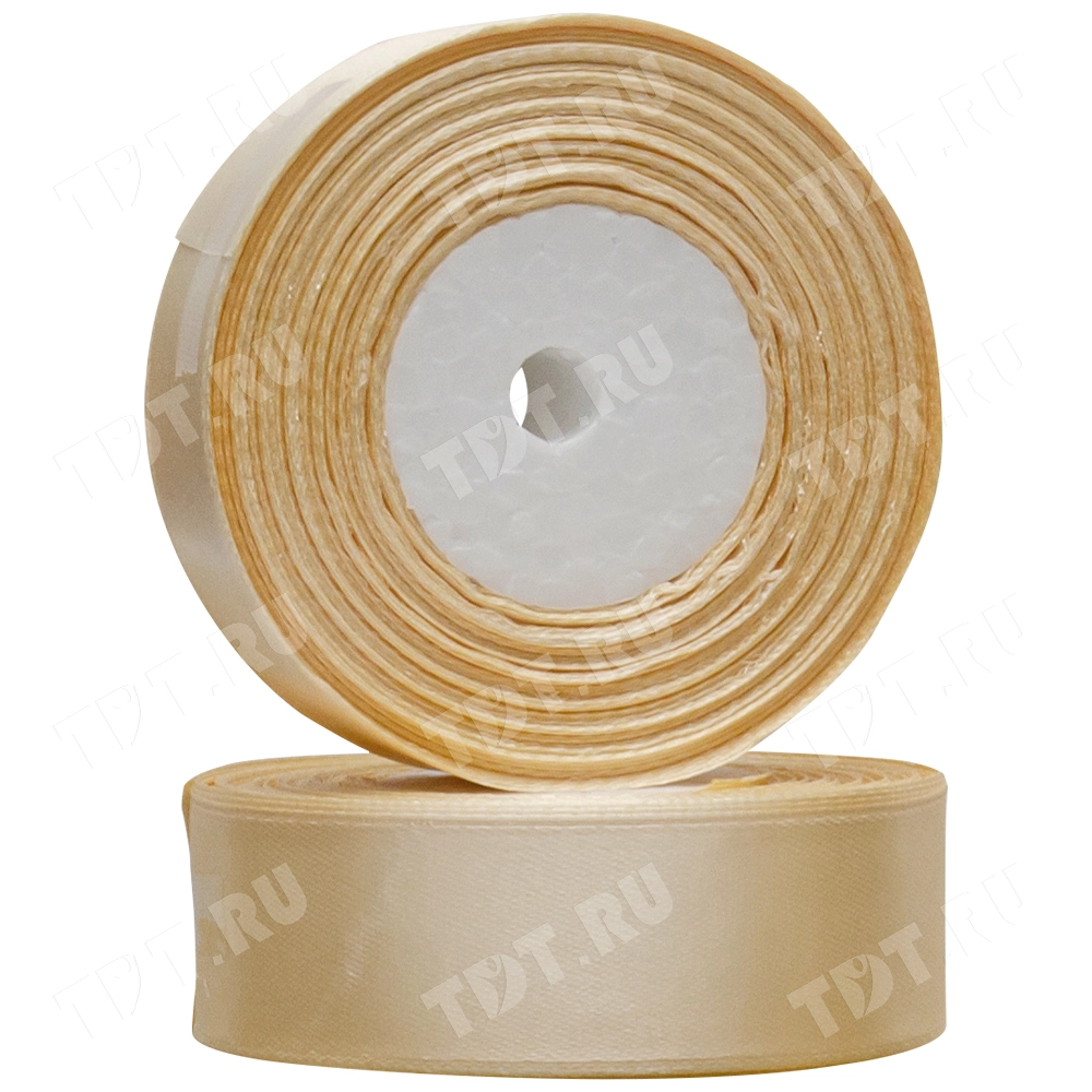 Атласная лента цвета шампань, шириной 25 мм, намоткой 23 метра. Шелковые ленты предназначены для отделки и декорирования изделий из ткани, оформления праздничных мероприятий, упаковки подарков и цветов.