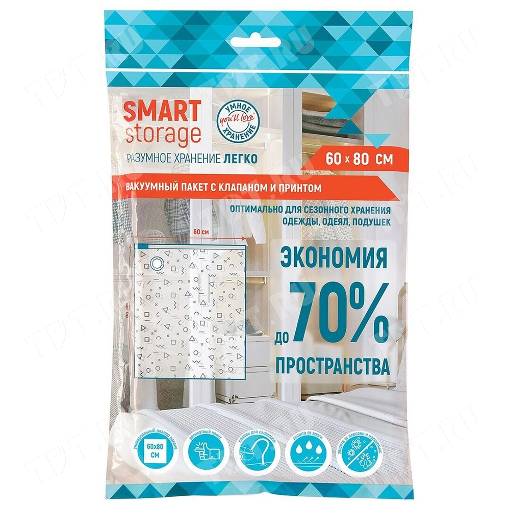 Вакуумный пакет Smart Storage с клапаном и принтом, 60*80 см, 1 шт.