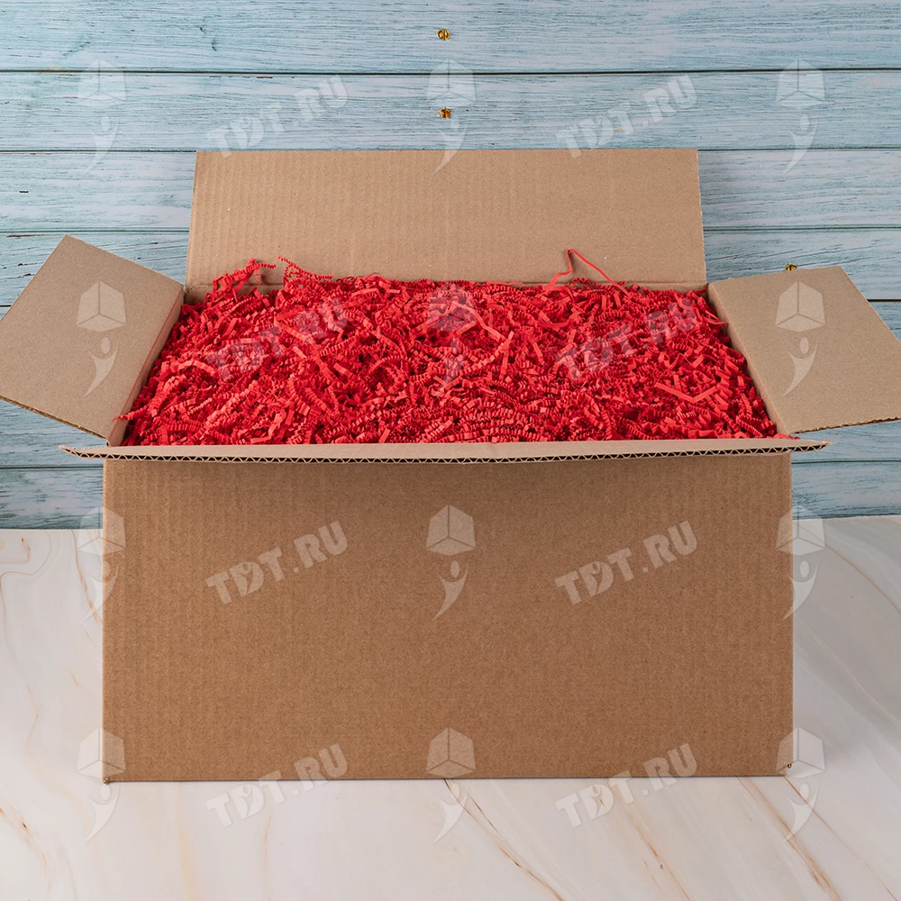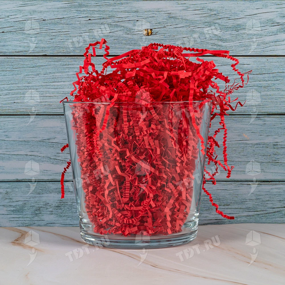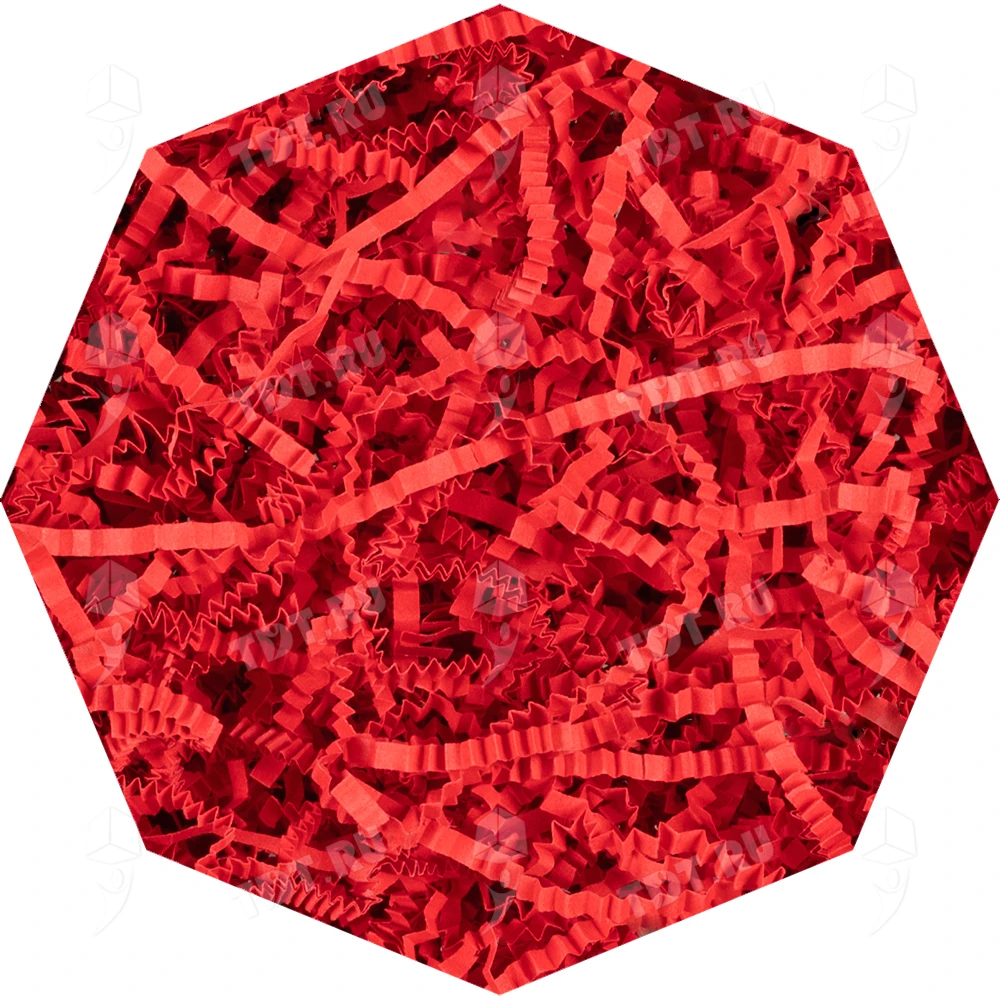 Бумажный подарочный наполнитель «Маковое поле» из цветной бумаги красного цвета, весом 1 кг, плотностью 80 г/м², шириной резки 3 мм. Производится в России.