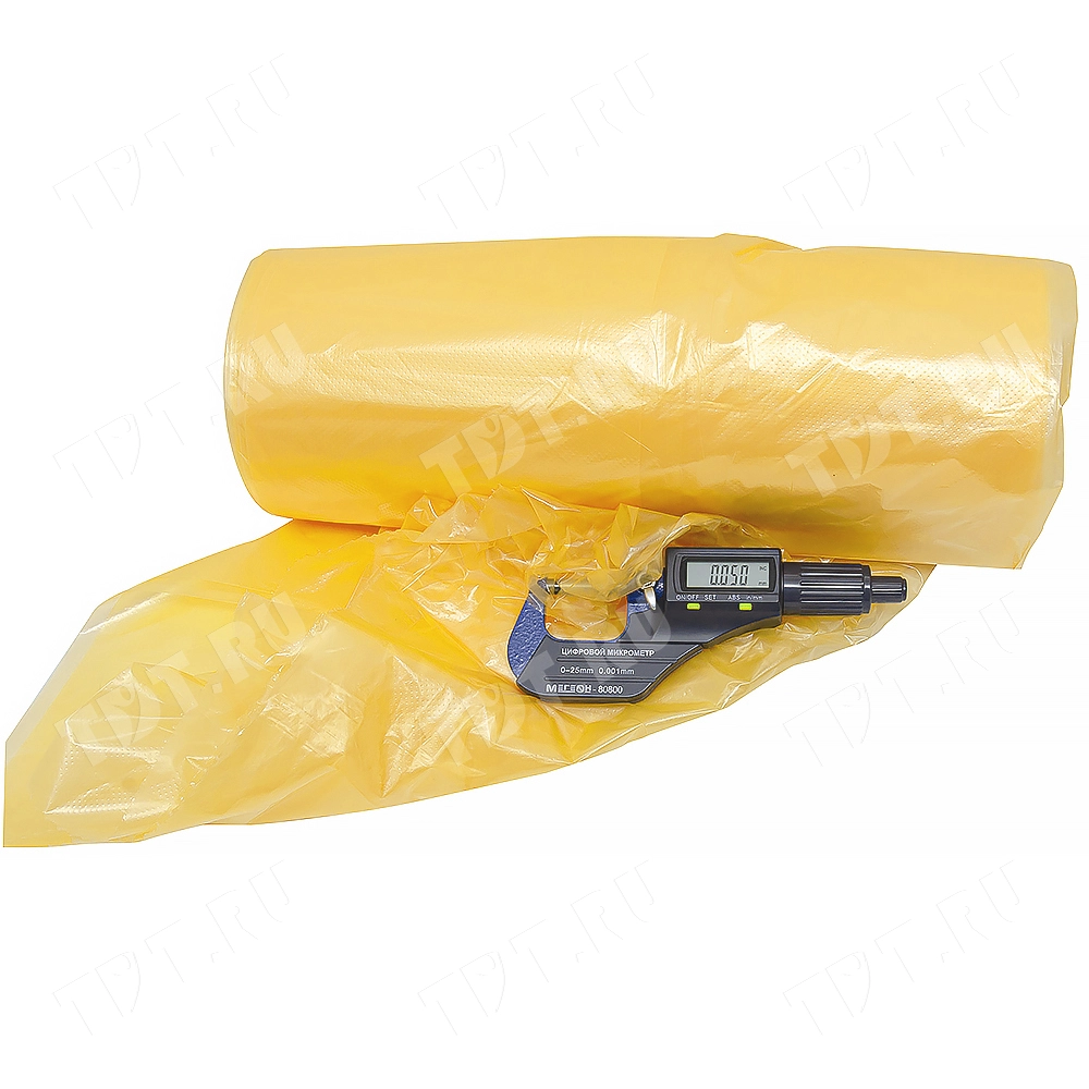Большие пакеты для мусора Бета-Куверт, желтого цвета, объемом 1000 л, длиной 230 см, шириной 125 см, толщиной 50 мкм, в рулоне 10 пакетов. Изготовлены из полиэтилена среднего давления (ПСД). Производятся в России.
