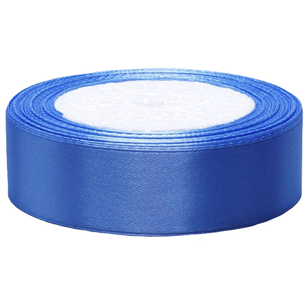 Атласная лента синего цвета, шириной 25 мм, намоткой 23 метра. Шелковые ленты предназначены для отделки и декорирования изделий из ткани, оформления праздничных мероприятий, упаковки подарков и цветов.