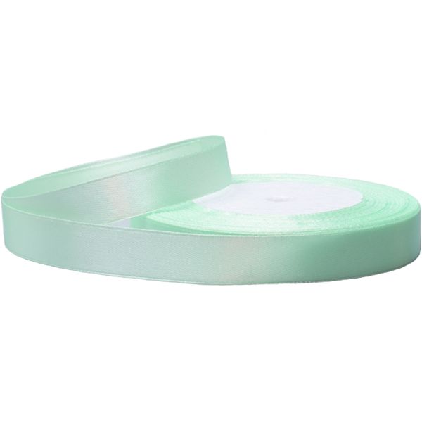 Атласная лента пастельно-зелёного цвета, шириной 15 мм, намоткой 23 метра. Шелковые ленты предназначены для отделки и декорирования изделий из ткани, оформления праздничных мероприятий, упаковки подарков и цветов.