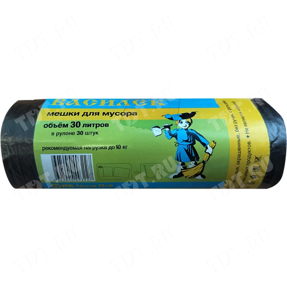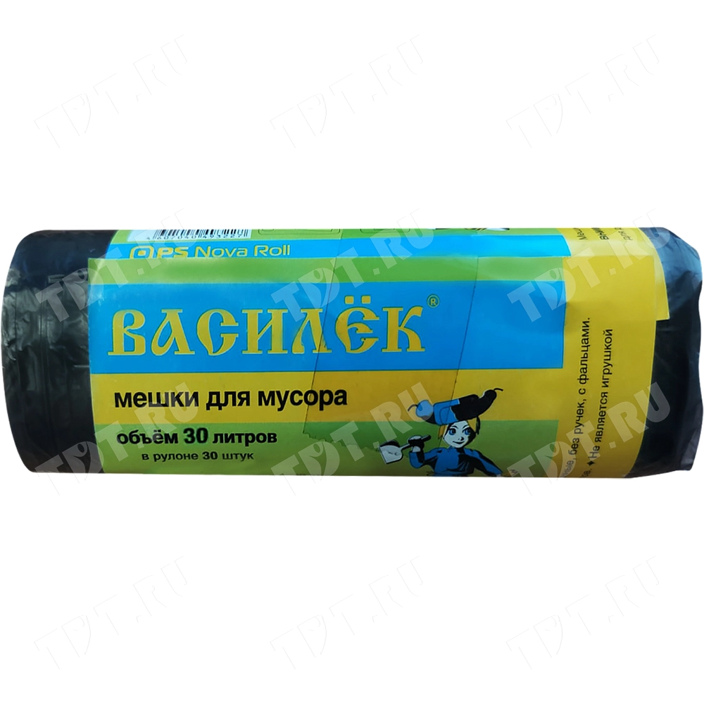 Мешки для мусора ПНД «Василёк» 30 литров, плоское дно, 50*60 см, чёрные, 30 шт./рулон